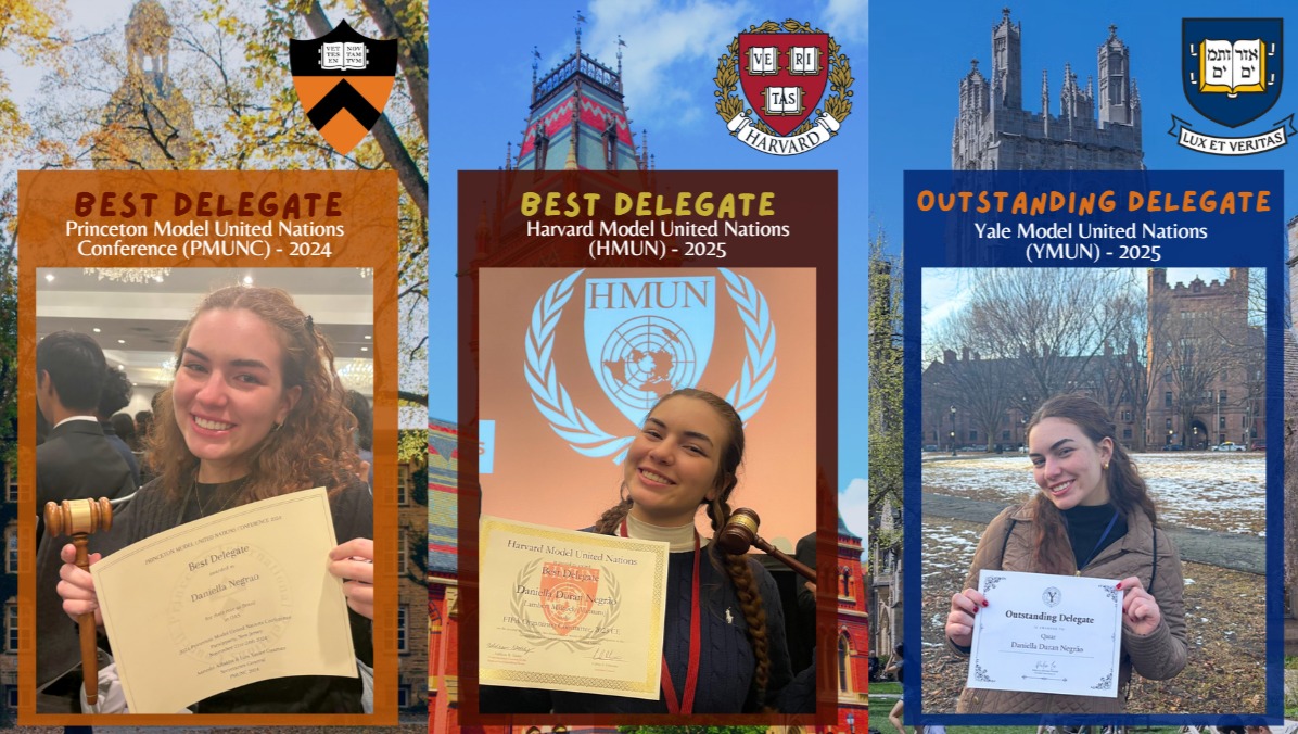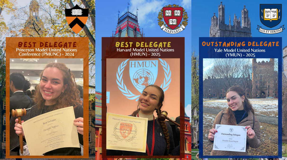 - Diversos prêmios nas maiores simulações da ONU do mundo, com destaque para Best Delegate em Harvard e Princeton e Outstanding Delegate em Yale;