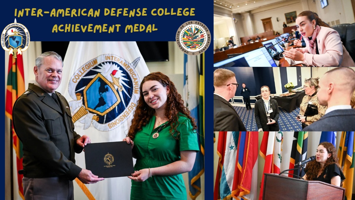 - Unpaid internship at the Inter-American Defense College, in Washington, D.C., where I received a medal of achievement in recognition of my support for the ceremonial activities, organization of the institutional archive, and crisis simulation for the Master's in Hemispheric Security and Defense program.