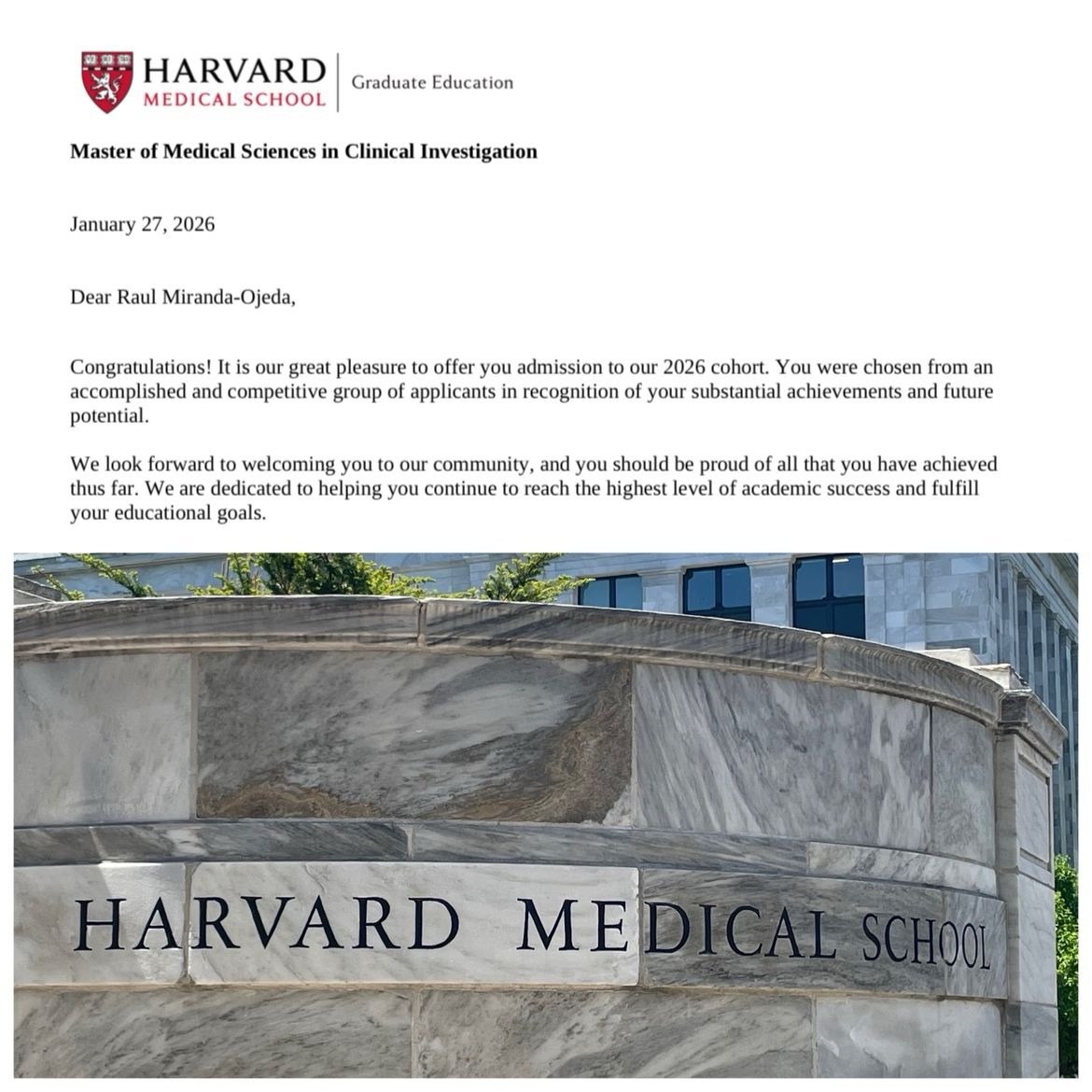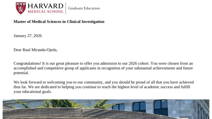 I come from Cabo San Lucas, Mexico, a place that has shaped my values, resilience, and commitment to helping others. After years of clinical training, academic work, and research, I was recently accepted to pursue a master’s degree at Harvard Medical School. This opportunity represents an important step in my professional development and in my long-term goal of contributing to medical research and improving healthcare access, particularly for communities that are often underrepresented in scientific work.