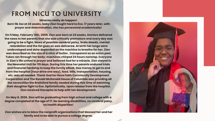From NICU to University - Help Zion Give Back