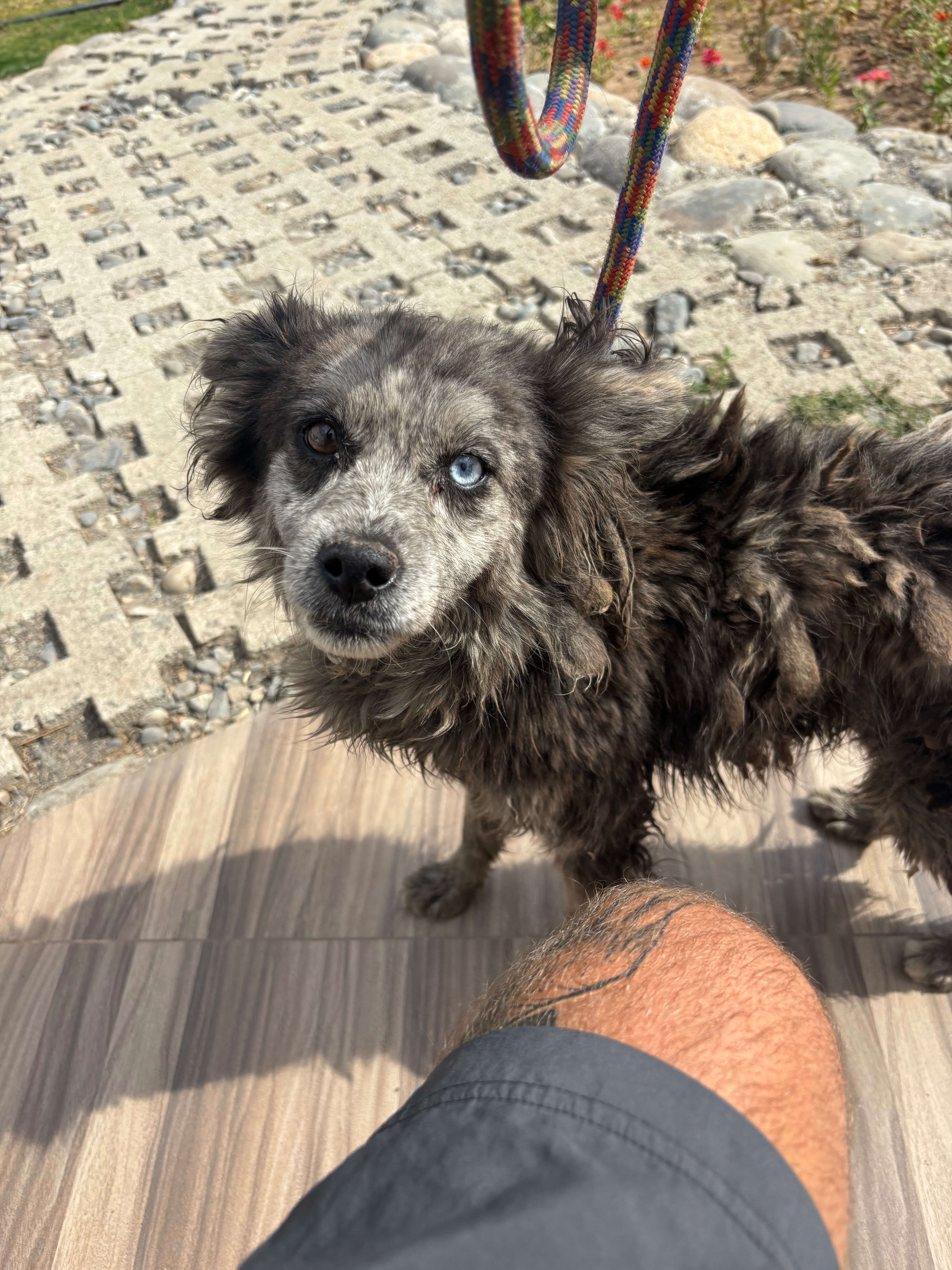 Shadow arrived at the shelter after being rescued from the streets in Huaraz, we think he was abandoned by his previous owner as he was found near a river where a lot of dogs are left to fend for themselves. When he arrived his fur was matted, he was scared and skinny, but it was clear that he had a lot of love to give to humans.