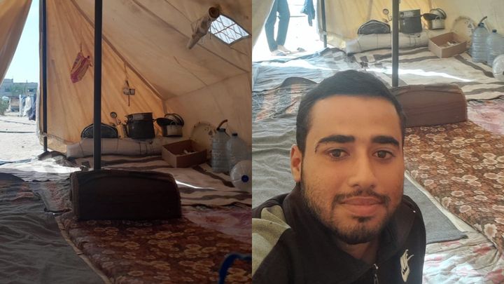 منذُ بدايةِ الحرب وحتى الآن نزحنا ست مرات من مكان إلى آخر بحثاً عن الأمان الذي يكاد معدوماً في غزة، للأسف الآن أعيش أنا وعائلتي في خيمة صغيرة لا تقينا حرَ الصيف ولا بردَ الشتاء وظروف العيش فيها صعبة جداً، فمن الممكن بسهولة أن تدخل عليها أجزاء الصواريخ المتَطايِرَة فتصيبنا بأذىً كبير أو تتسبب في موتنا.