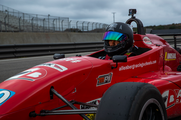 At Allen Berg Racing School, Tyler recorded the fastest lap times of his class—just three seconds off seasoned coaches—earning praise for his learning speed and track IQ.