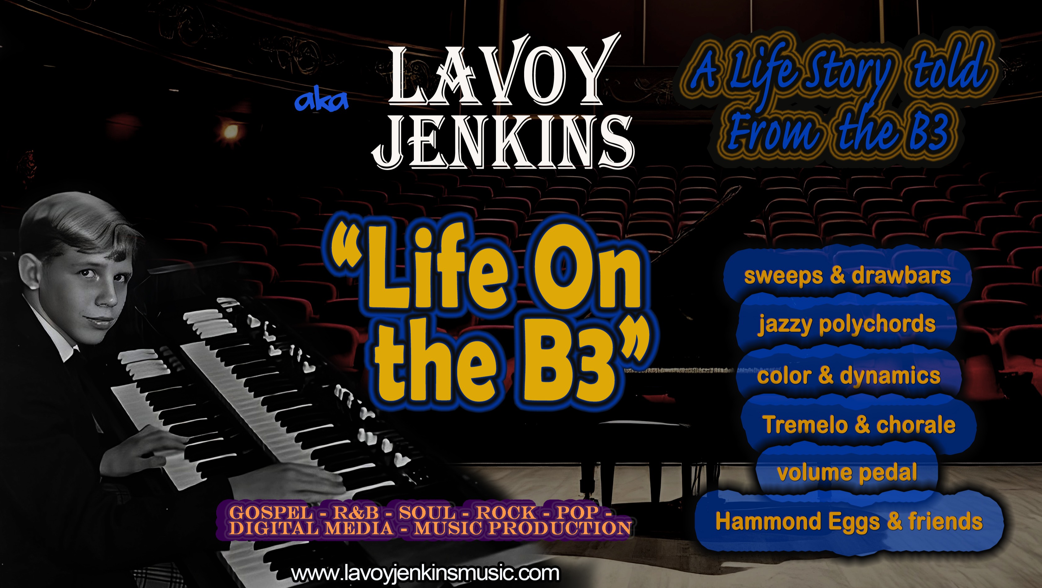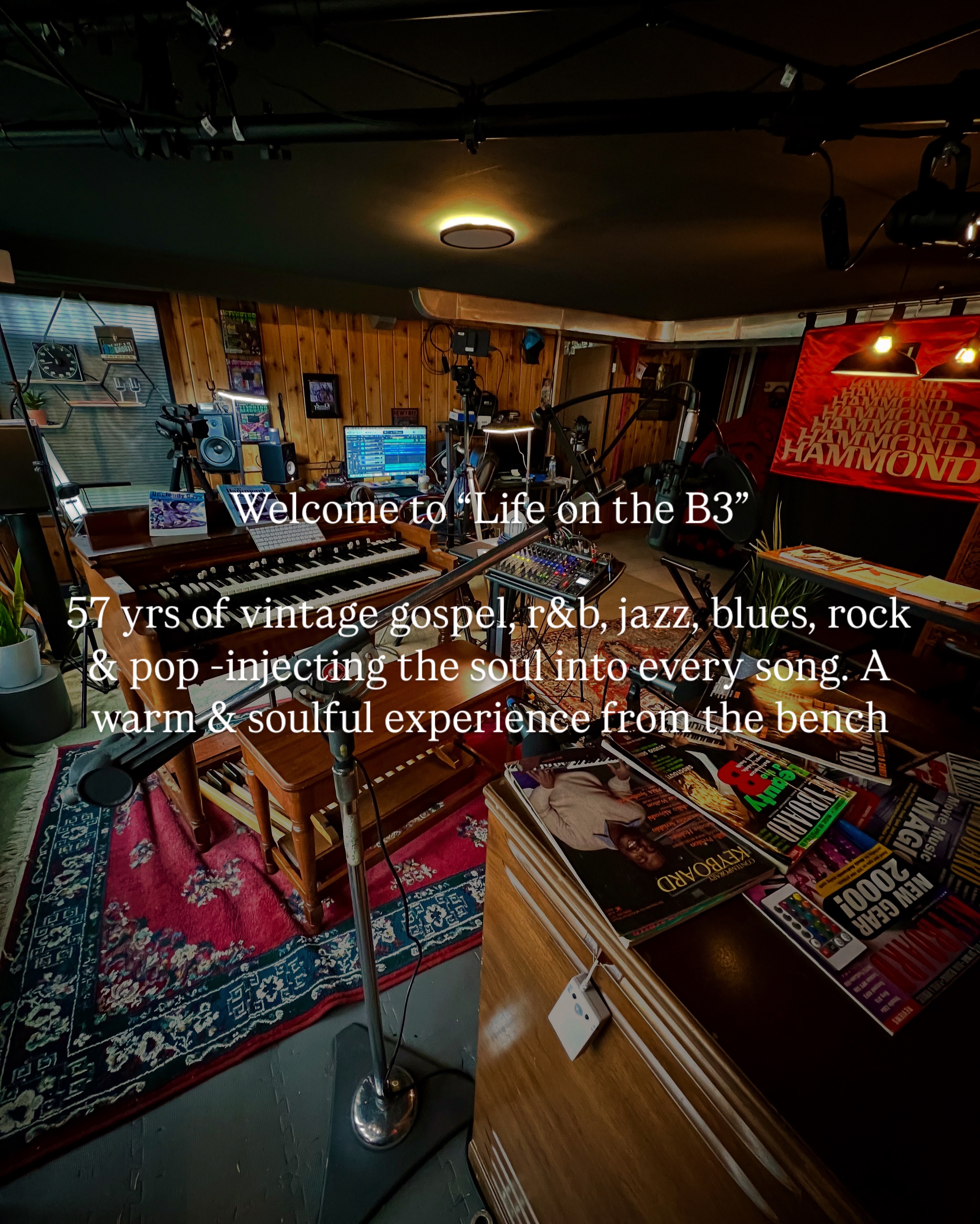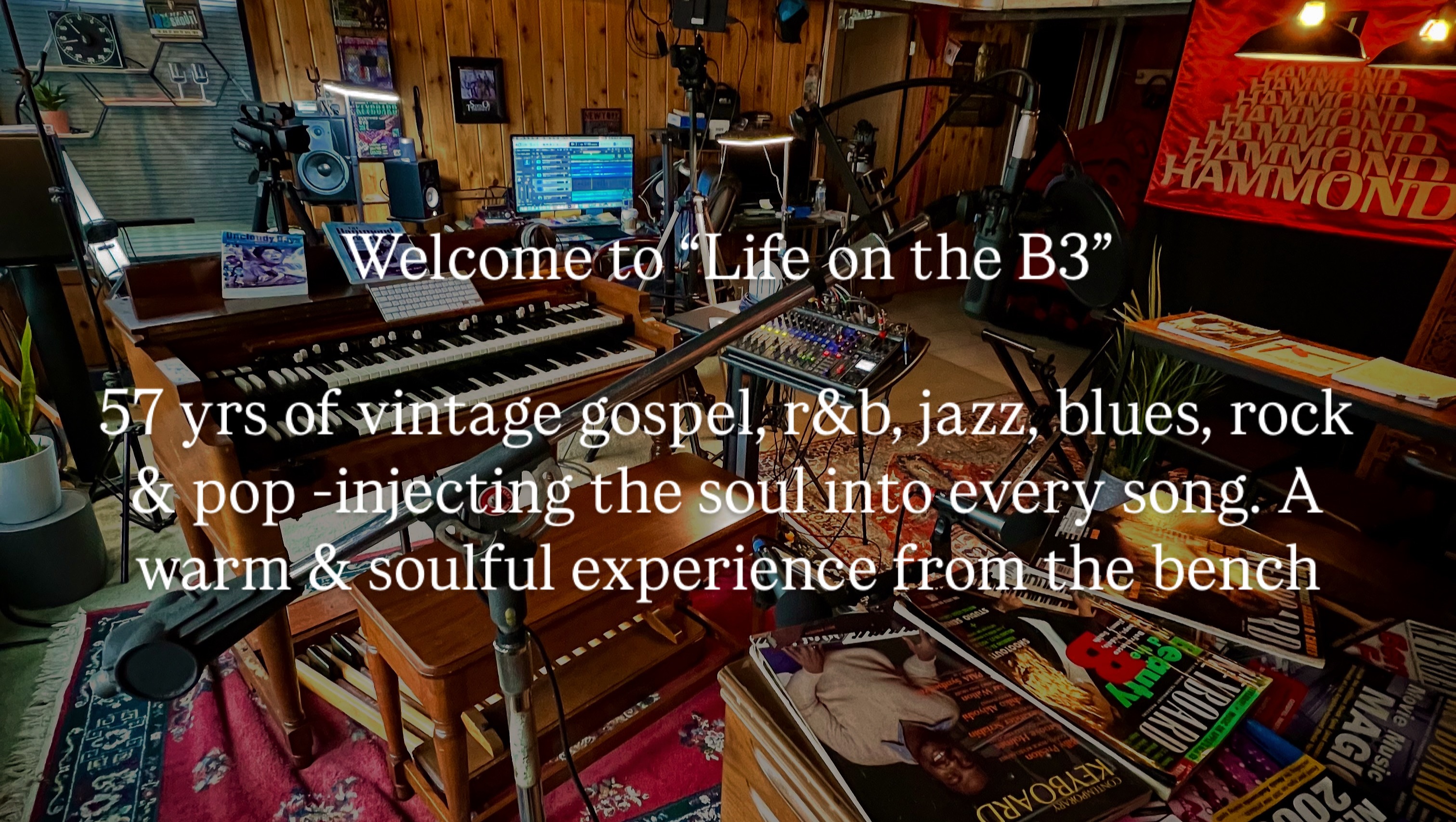 The real gift was soaking up styles from incredible Gospel organists who came through our church in Revivals for weeks at a time. I was a sponge, and those years hooked me on the B3 for life. ... Now in this short series I’ll tell my full story from the B3 bench, mixing in music with an entertaining & educational segment called “Hammond Eggs” in the “Soul Kitchen,” where I’ll share drawbar tones & settings, jazzy polychords, sweeps & dynamics, Leslie speaker and choral settings, percussion and tips—sometimes with guests. It’s all about playing it forward, and you gotta get up to get down."