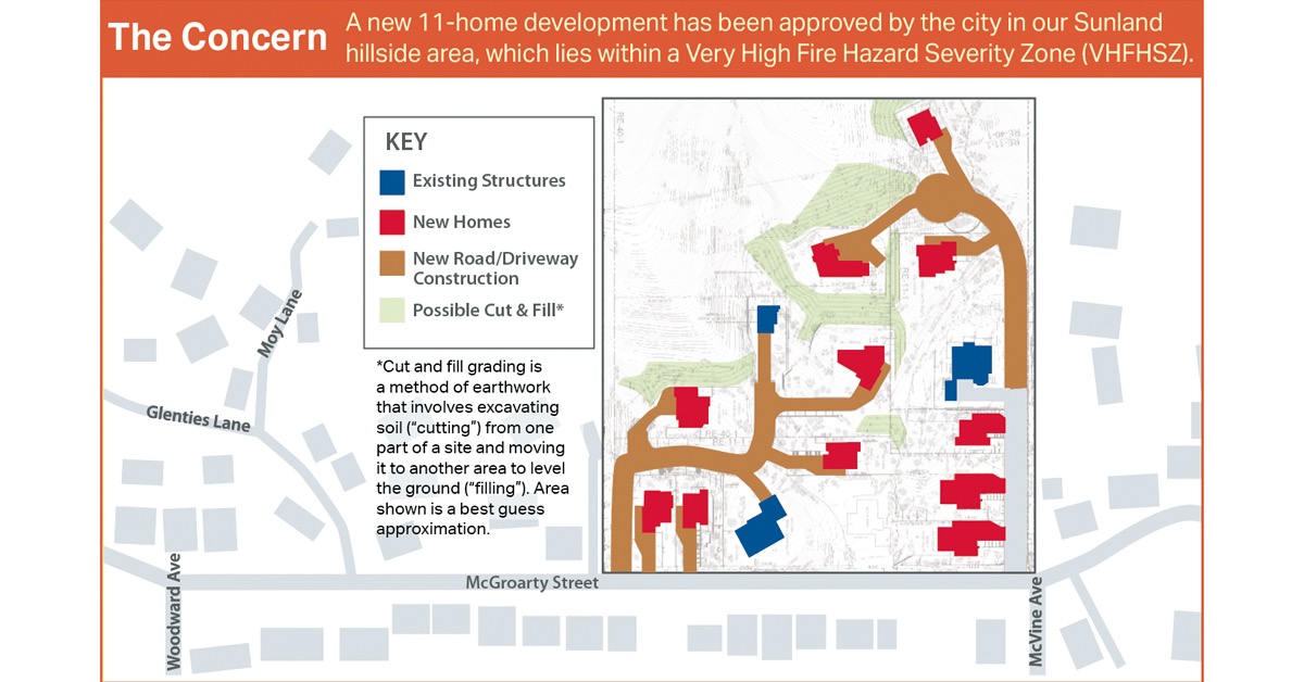 Many residents throughout the area have concerns about emergency access, traffic impacts, wildfire risk, and infrastructure capacity in this hillside community.