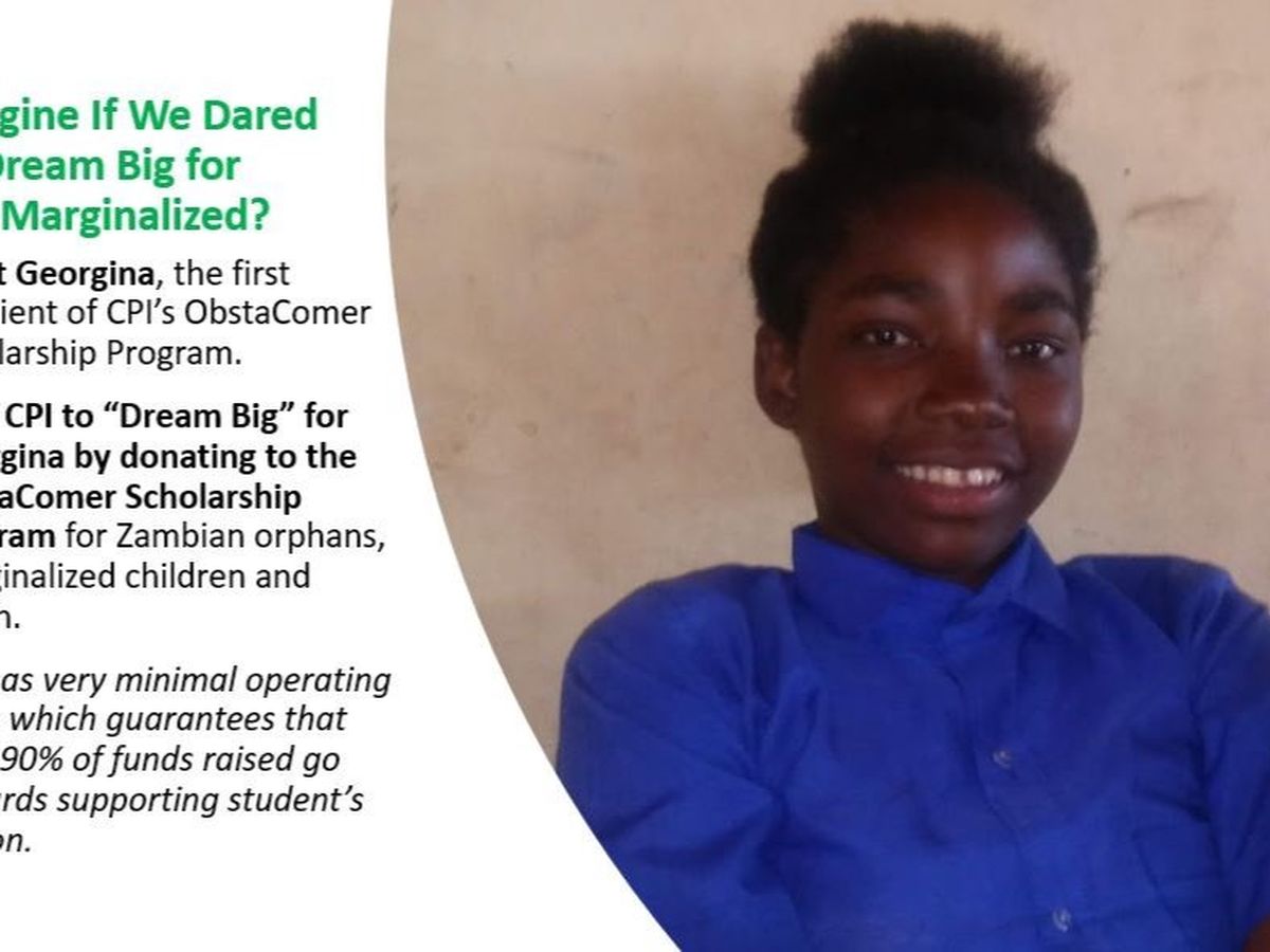 The ObstaComer Scholarship Program is CPI's new 2020 initiative created in honor of CPI volunteer, Elizabeth Mulenga's late parents Mathew & Jean Mulenga. The program aims to support orphans, marginalized children and youth. Zambia has more than 1 million orphans, giving it the highest per capita orphan rate in the world, according to UNICEF. Zambia has an estimated overall population of 13 million with 64% of its population living on less than USD $1 per day, and 80% living in rural areas on less than USD $1 per day. Zambia has 4th lowest life-expectancy rate in world at 37.5 years.
