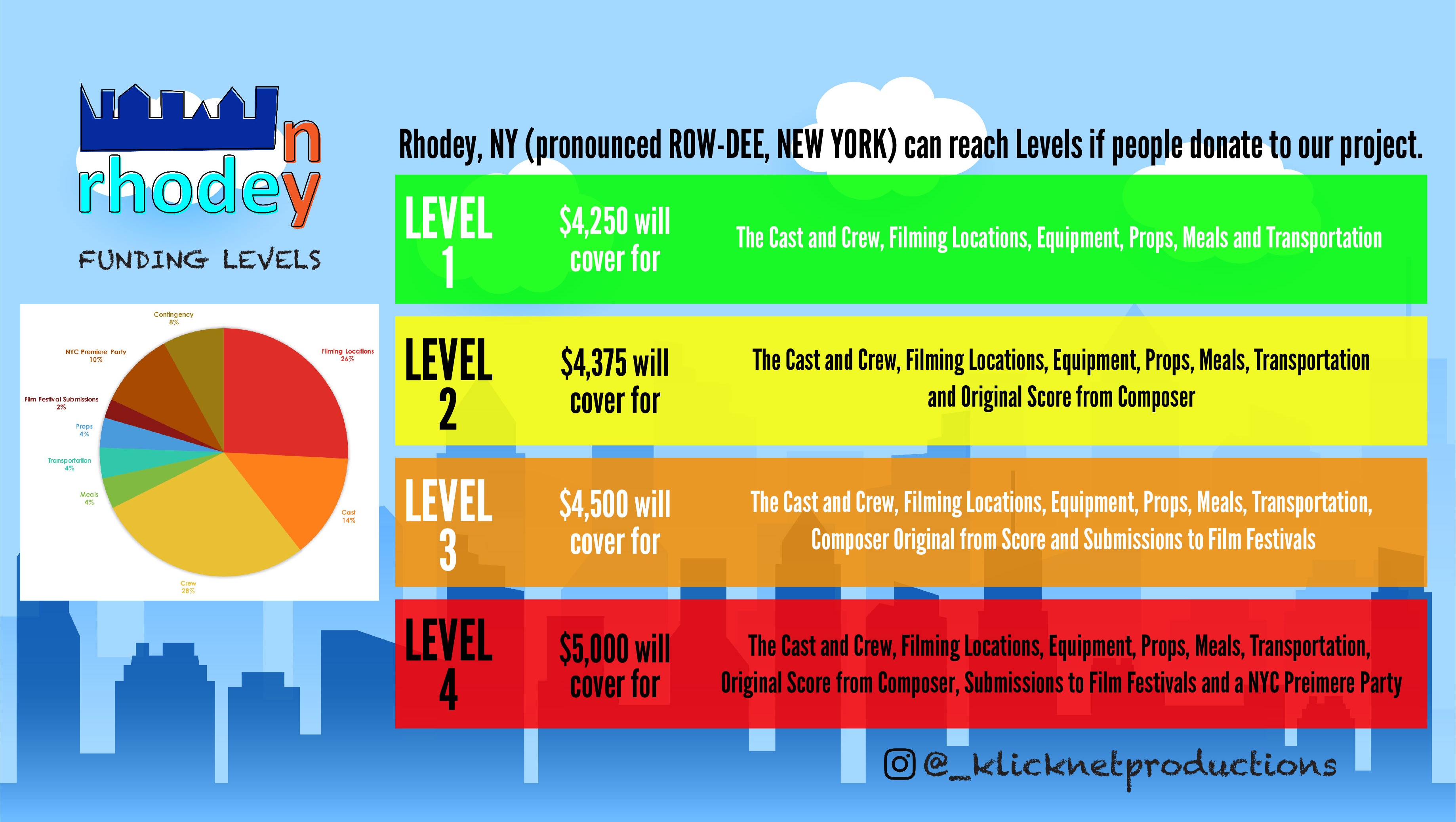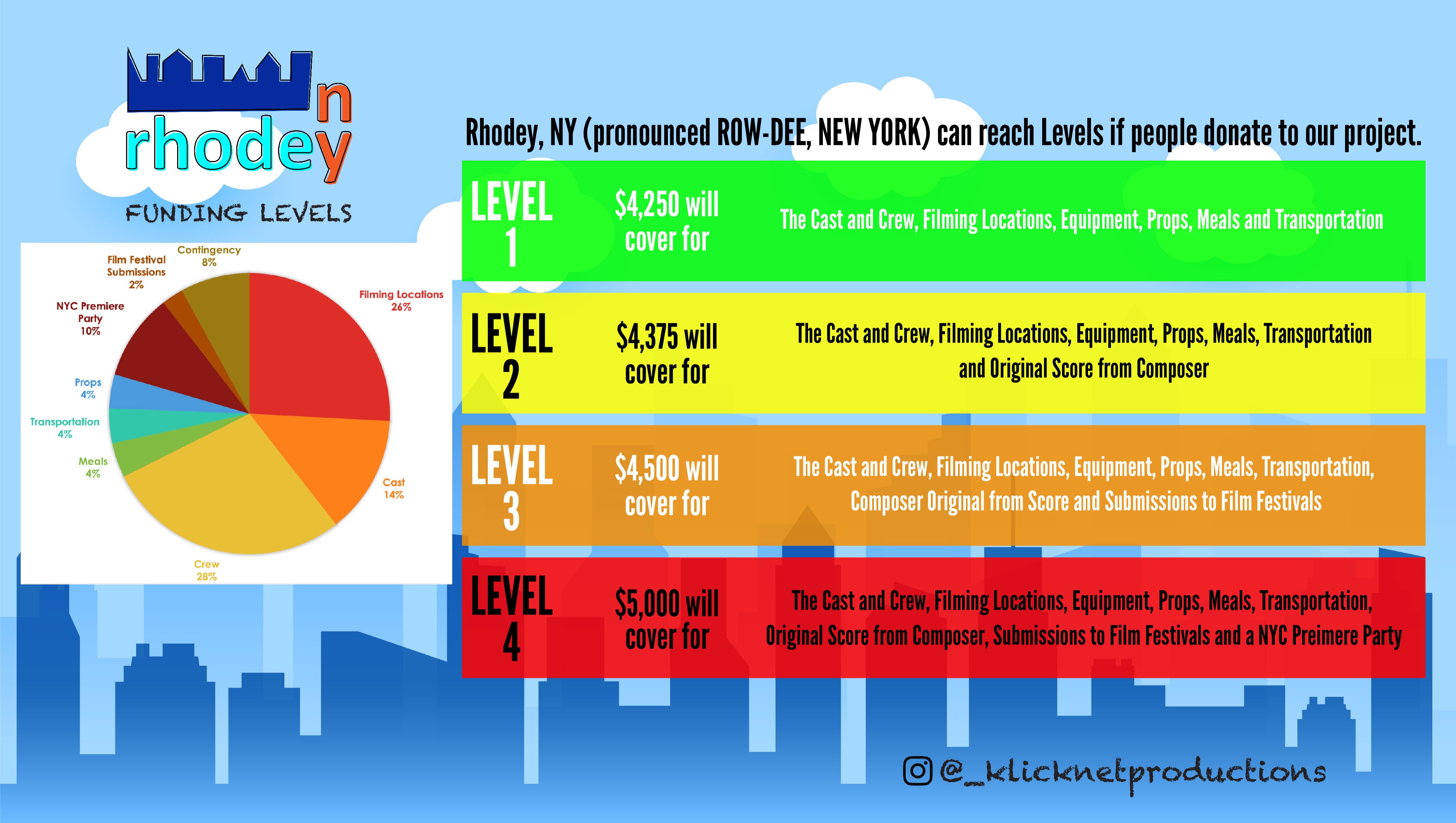 In order for the film to take place in the Tri-State Area (New York City and New Jersey), the goal is to raise $5,000; if we do however get up to $4,250, we'll still be able to film.