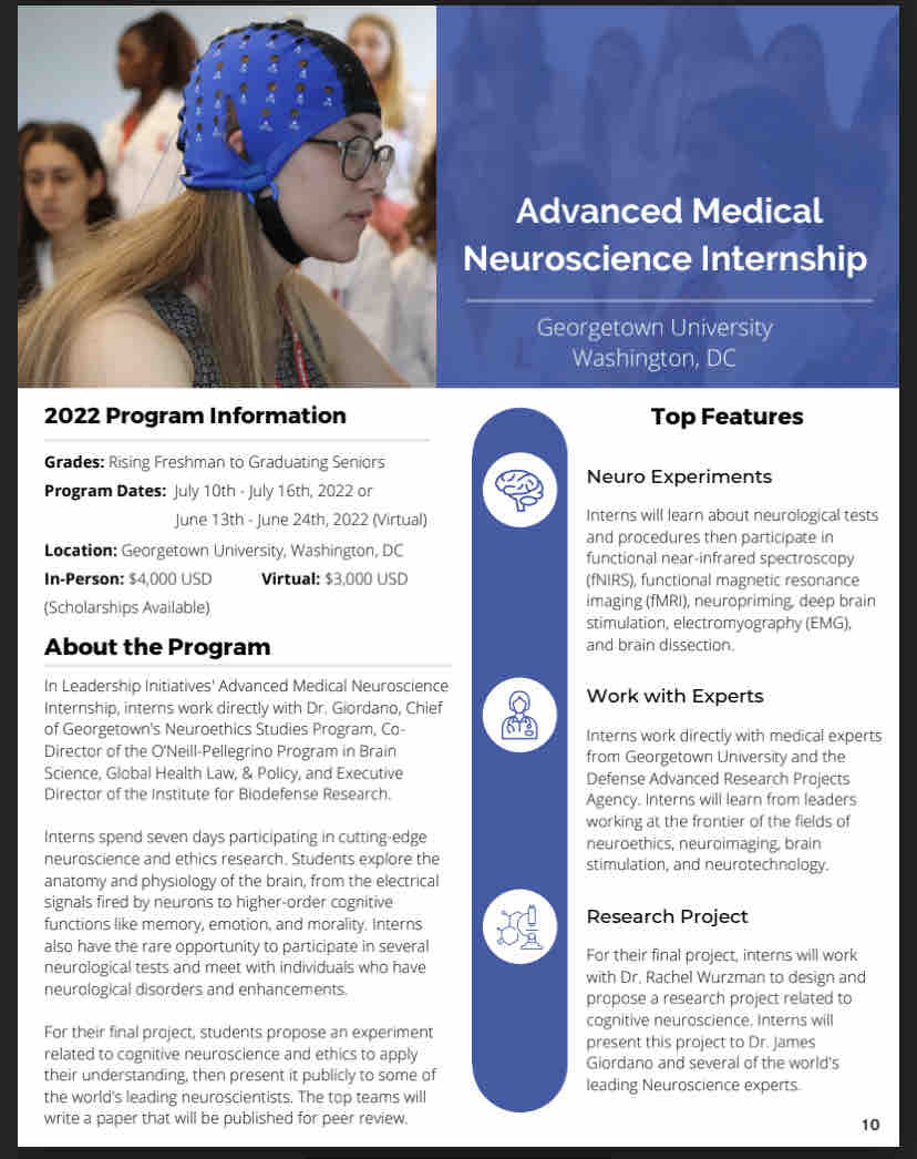The organization's website for more info: https://lichange.org/summer/advanced-medical-neuroscience-internship/