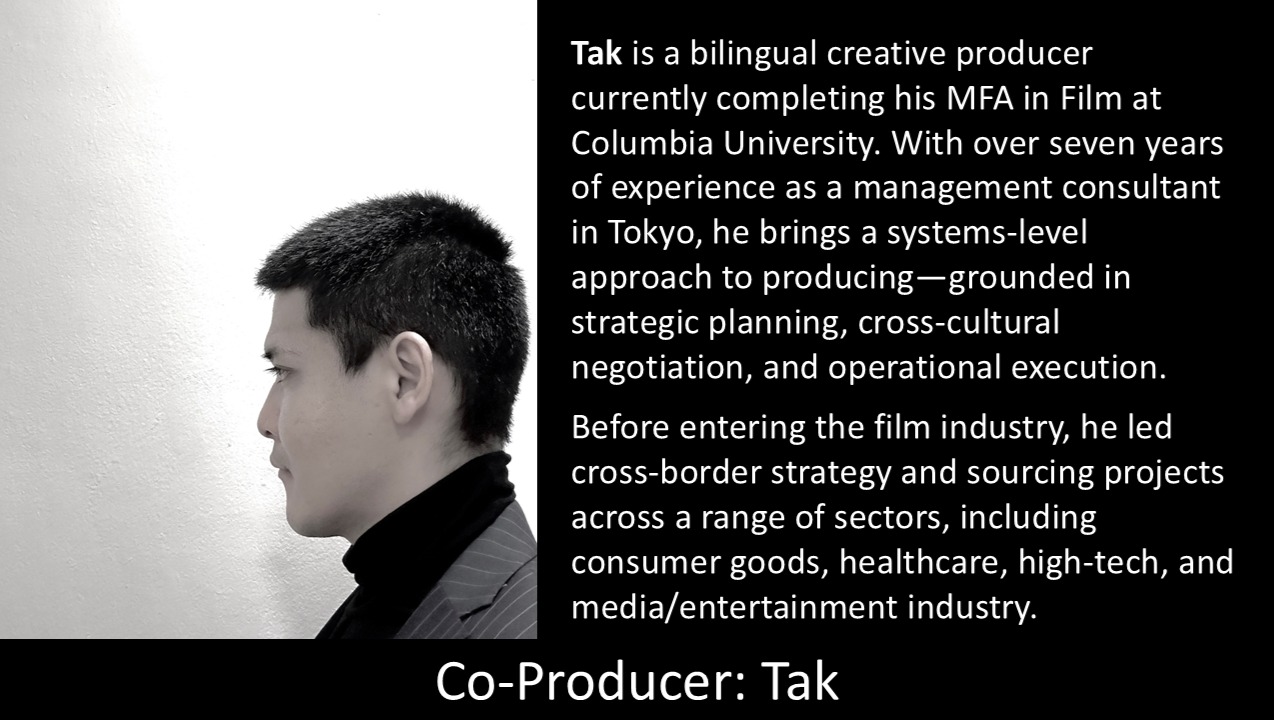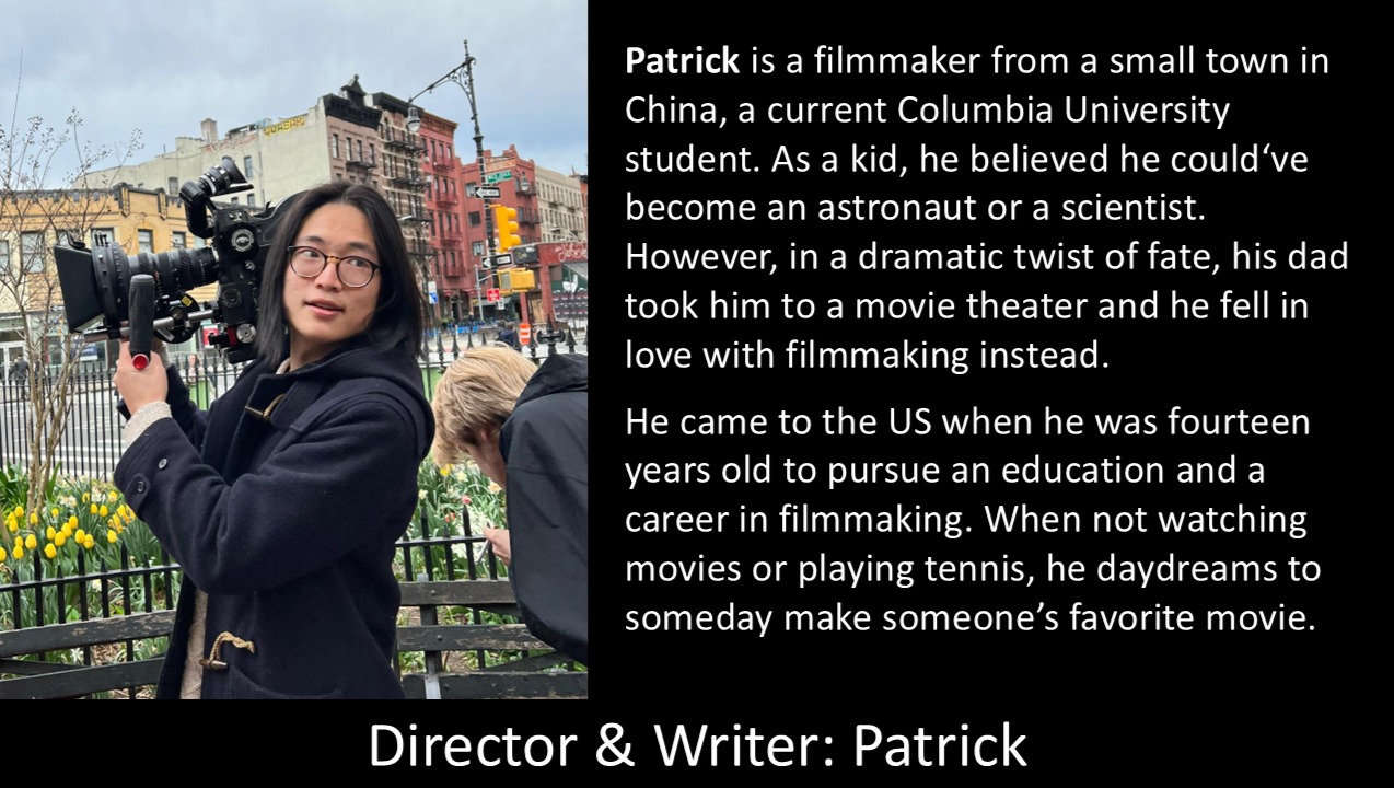 A Dinner Guest is a thesis film project for the MFA degree at Columbia University. The story is centered around the Dings, a Chinese American family residing in upstate NY. On the eve of a holiday, the Dings hesitantly invites Mrs. Tao, a Chinese woman who is on the verge of losing her US visa, to stay at their house, and her presence drives a wedge between the family members. Meanwhile, Mrs. Tao forms an unlikely bond with their 12-year-old son Eli.