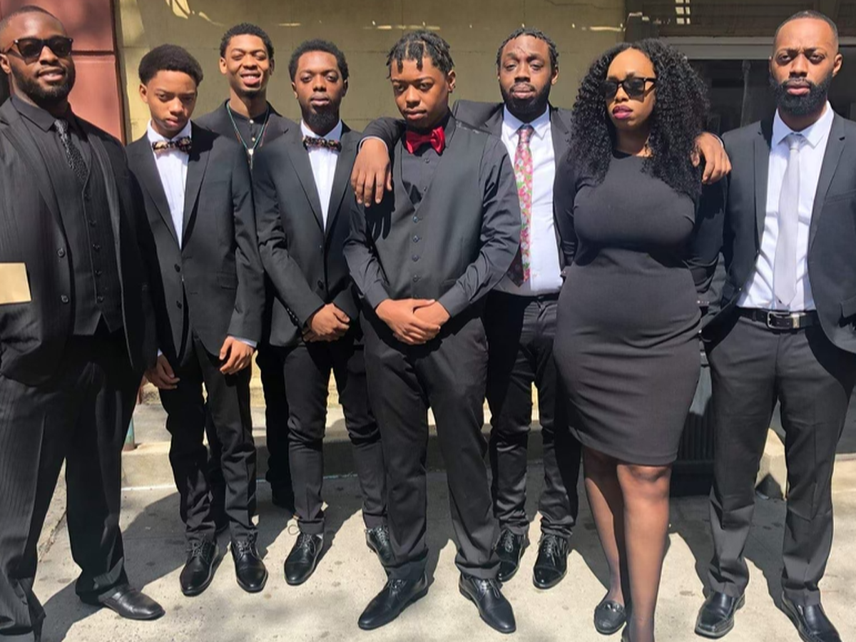Jaden is wearing a red bow tie (picture above) - surrounded by his 7 siblings. This photo was taken at our mom's funeral in 2019.