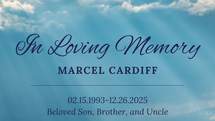 beloved brother and son, Marcel Cardiff. Our family is still struggling to process the reality that his life was taken from us far too soon in an act of violence that no one could have imagined.
