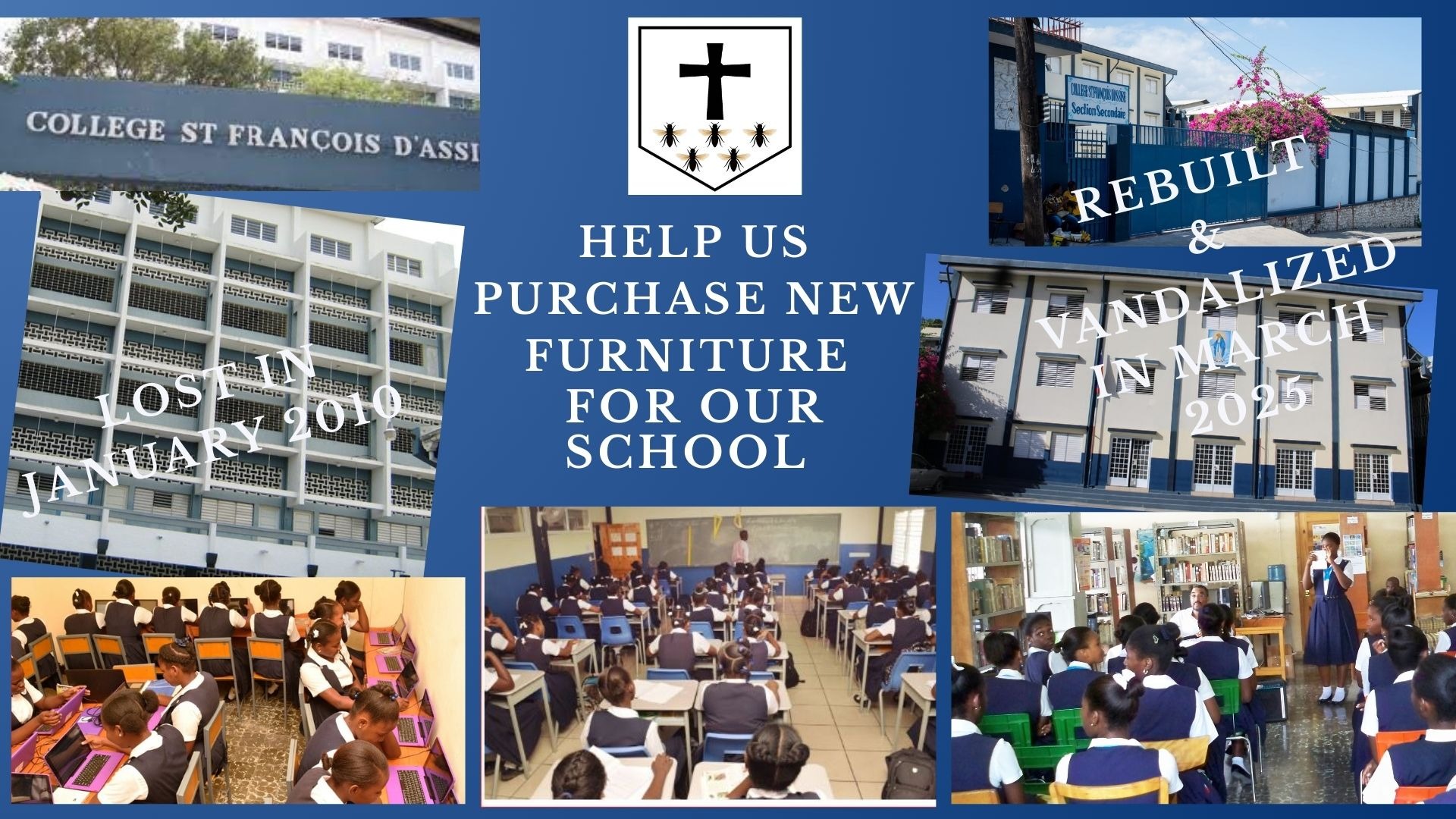 My name is Nadia Lemoine André, an alumna ('78) of the College Saint François d'Assise. An attack by armed individuals in March of 2025 forced the relocation of the Secondary School to safer ground resulting in the loss of ALL material acquired after the 2010 earthquake.