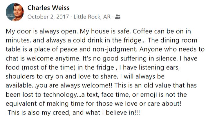 Charles Mitchell Montgomery Weiss (August 17, 1968 - February 24, 2022) age 53, died unexpectedly in his home in Little Rock, Arkansas of natural causes. Charles Mitchell is survived by his son, Beaux Weiss of Little Rock, and Beaux’s mother, Ashleigh Corcoran. Charles Mitchell gave love and acceptance to everyone.