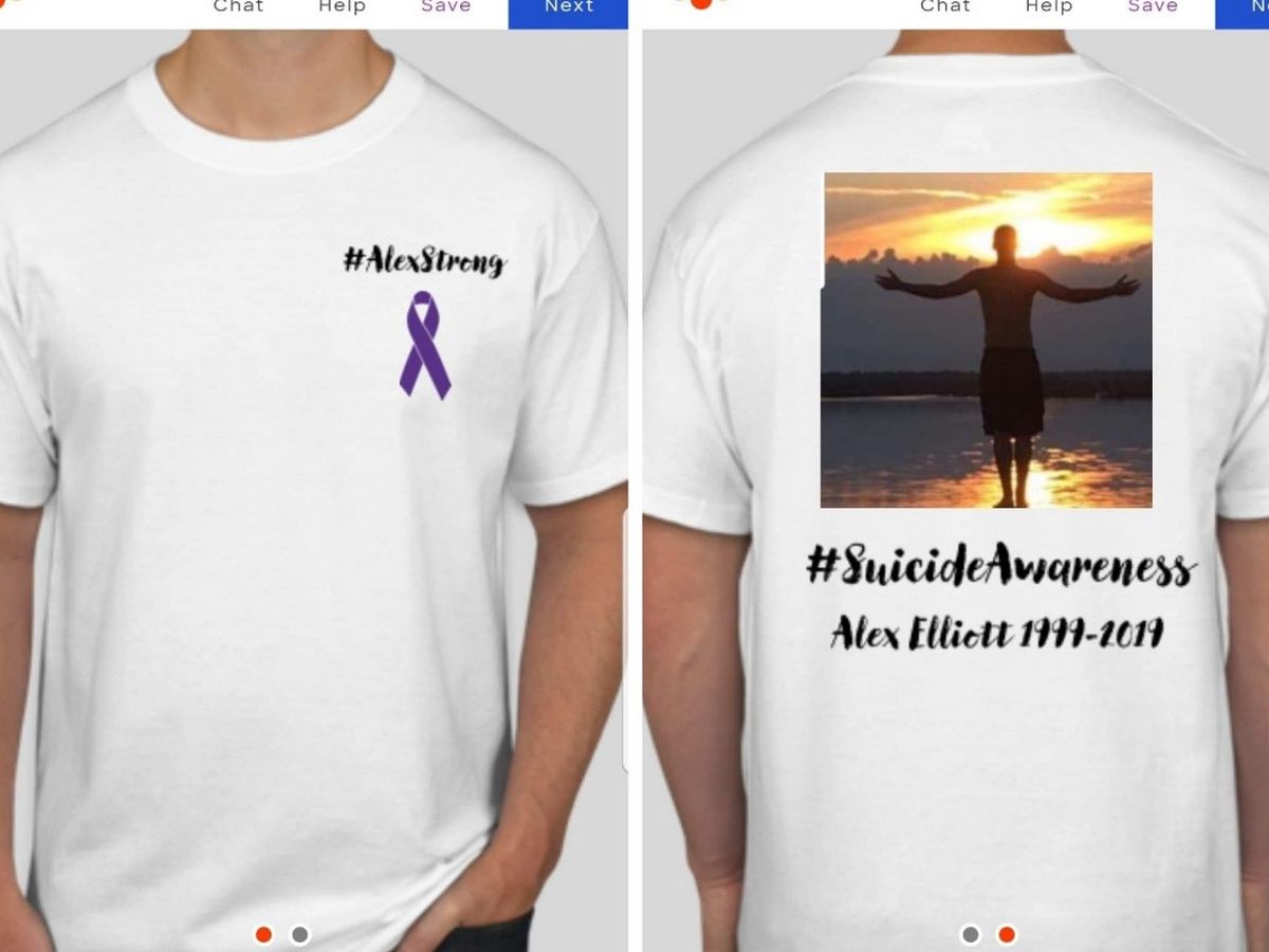 Our family is having these shirts made, to commemorate Alex’s life and to address the global issue of suicide prevention and awareness. I know that many of Alex's friends will appreciate this.