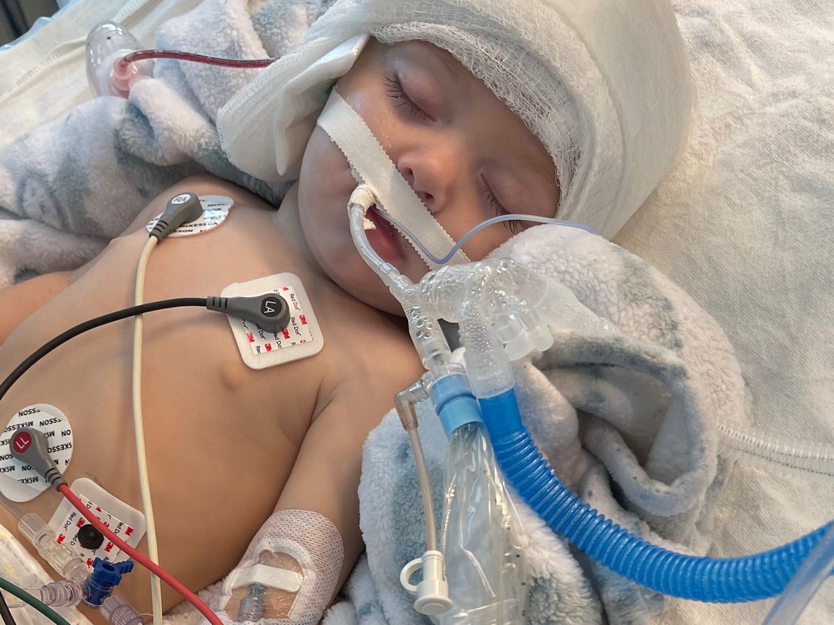 we took him to sutter north where he had an emergency surgery on his brain. cash had a blood clot that needed to be removed. he was then life flighted out to uc davis and will be staying in pediatric intensive care until further notice. we are lost for words, we are sad, angry, devastated. we went from having a perfectly happy healthy 6month old baby to seeing him with tubes in and out of every body part, more staples on his head than you can count, completely helpless.. all within a matter of hours. our world has been flipped upside down. we’ve been asking ourselves why, why do bad things happen to good people but we know everything happens for a reason and he will come out stronger than ever and so will our family. thank you for your support and keep praying for cash boy and our family.