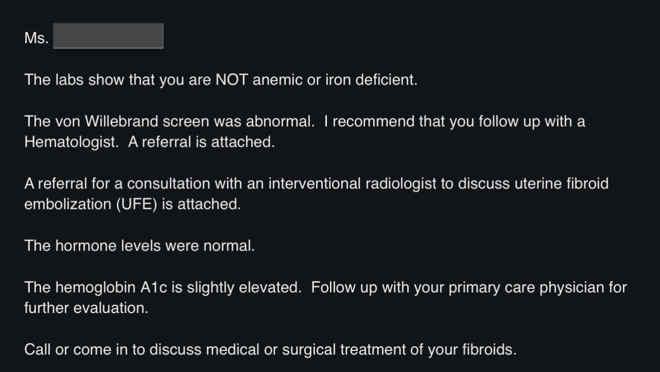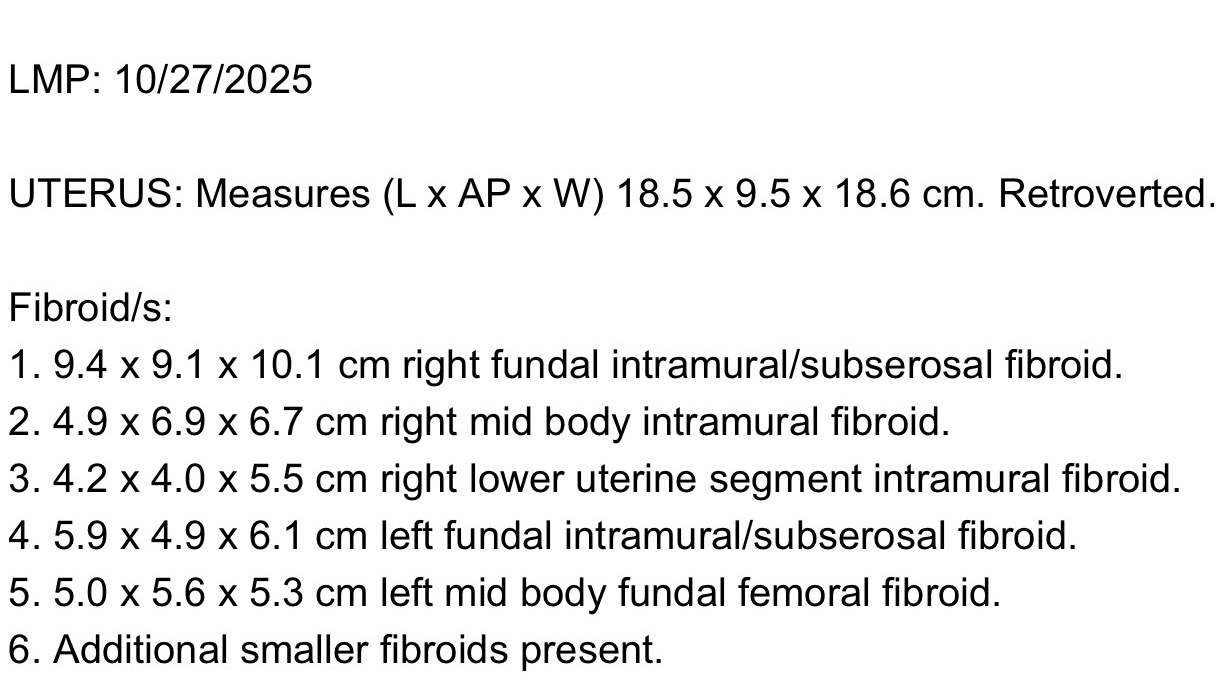 On November 10th, 2025, I was scheduled with an OBGYN who finally gave me a proper diagnosis and confirmed that I’ve been living with Uterine Fibroids. Confirming that doctors & specialists have been dismissing my symptoms and clear family history for years.