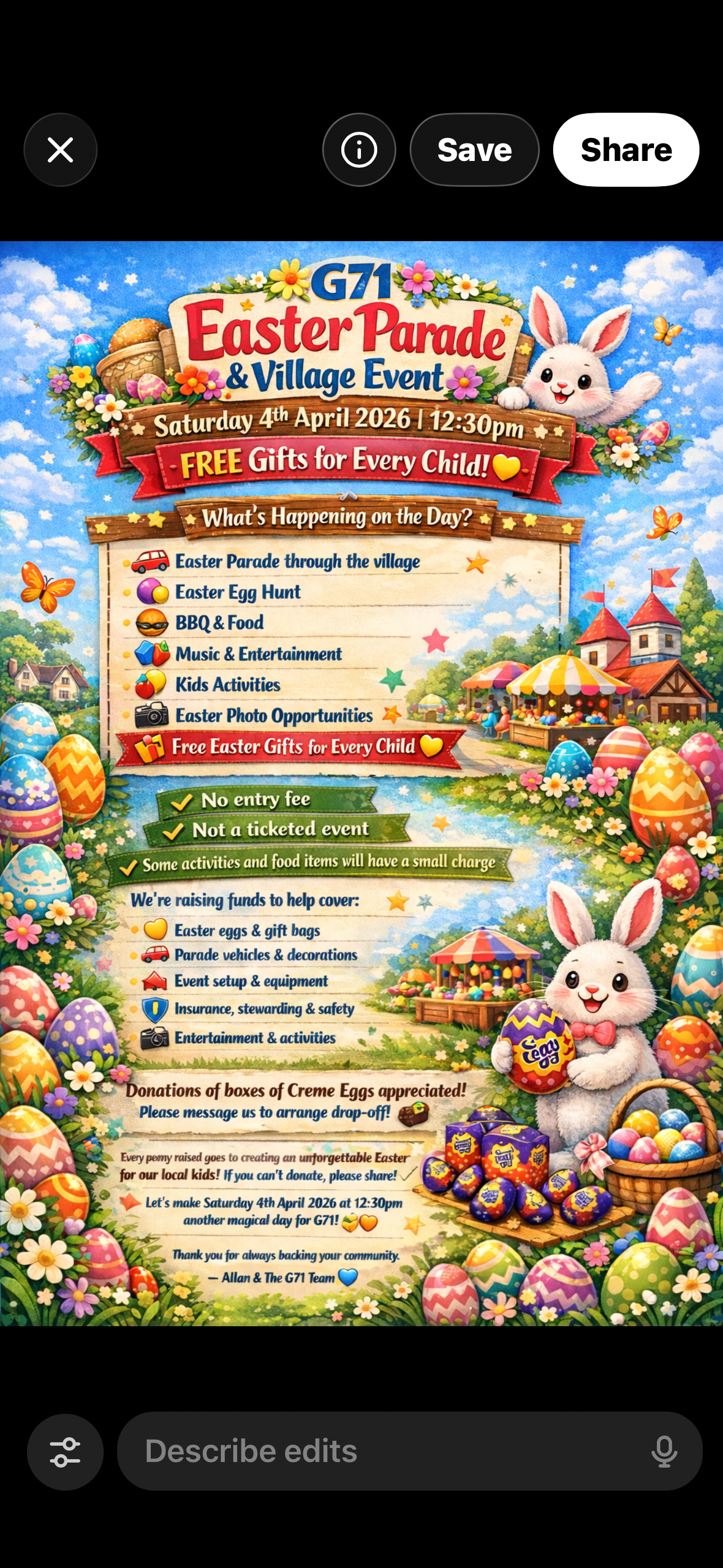 Every single penny raised goes directly into delivering a safe, inclusive and unforgettable Easter experience for our local children.