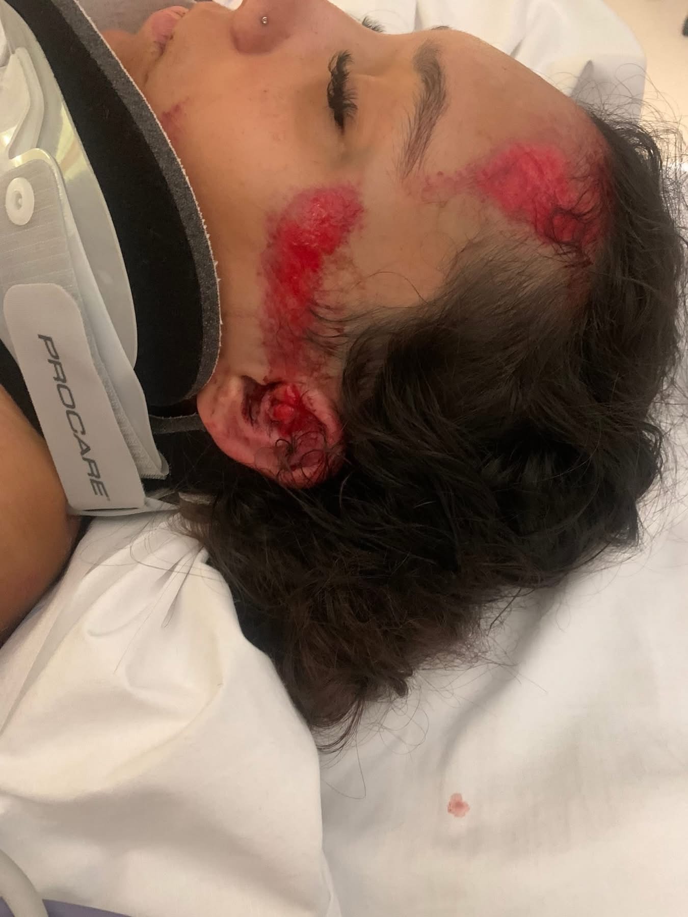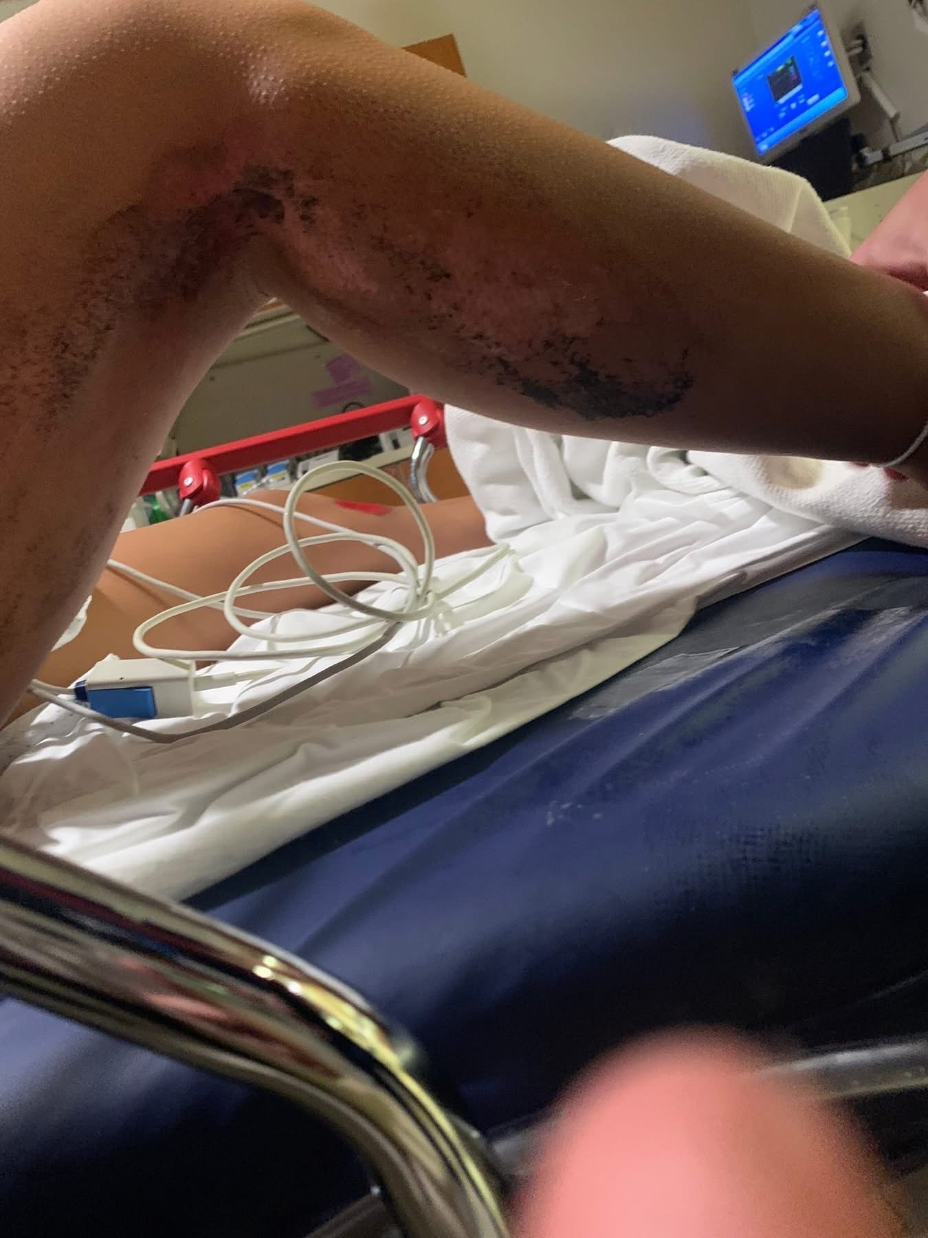 Severe road rash on over 30% of her body