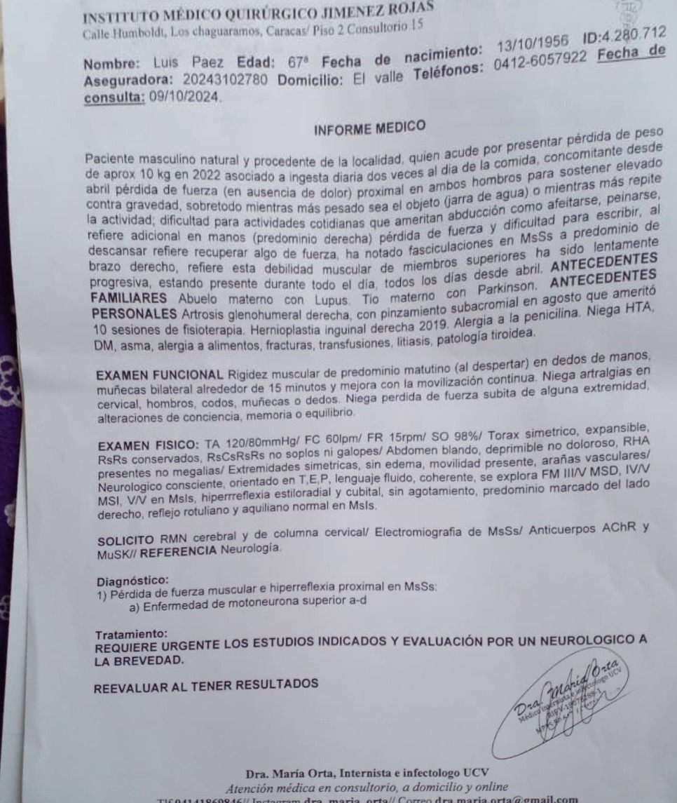 A principios de este año, nuestra familia recibió una noticia desgarradora. A nuestro querido padre, Luis Páez, le diagnosticaron ELA (esclerosis lateral amiotrófica), una enfermedad progresiva e incurable que le quita lentamente la capacidad de moverse, hablar y, finalmente, respirar. Casi al mismo tiempo, a nuestra madre, Angela Allup, le diagnosticaron arteriosclerosis, una enfermedad grave que afecta su circulación y la pone en constante riesgo de complicaciones cardíacas.