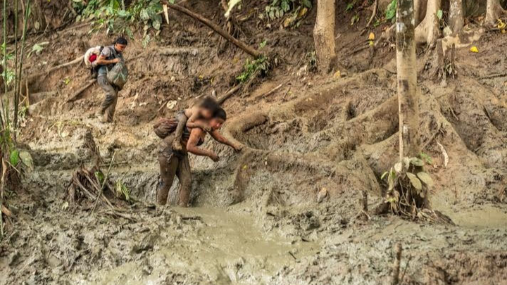 Juliana was 25 at the time and a single mother in Guayaquil, Ecuador. She got wind that a gang was coming for her 9-year-old son Gabriel as a proxy for her ex-boyfriend, his father, who remained in hiding. The gang had already killed the father's three brothers and were now looking for Gabriel. She decided to head north to the U.S. with him, having to leave behind her 5-year-old daughter because she was too young to make the trip on foot. They had to make the treacherous journey through the Darién Gap—an extremely dangerous route, with migrants facing steep mountains, muddy terrain, and fast-flowing rivers. They told us stories of "La Llorona" mountain—a steep, scary trek where people die falling off the trail or drowning in a river, and the scary sounds of jaguars, monkeys, and snakes. They were robbed more than once and held hostage in Mexico for a month—forced to work off a toll of sorts since they didn't have any money left. They saw violence against women and girls, and fathers couldn't help as they were kept at bay with guns pointed at them. I asked what they ate during those months, and the answer was bread. They were given bread along the way by the kindness of strangers.