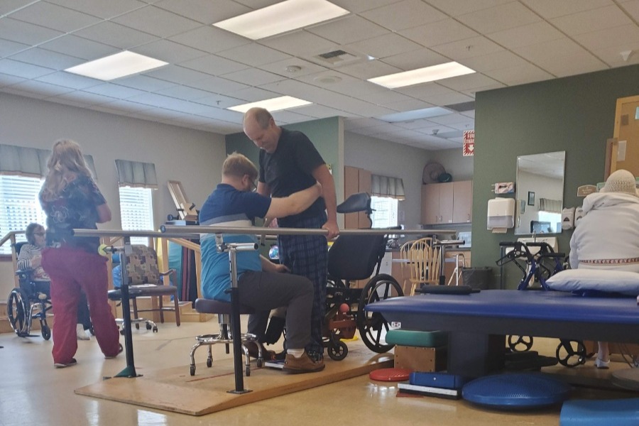 After a lengthy stay at the rehab facility, Dad was eligible to go back to Swedish for an intensive therapy program. They spent hours with him every day for a couple of weeks.