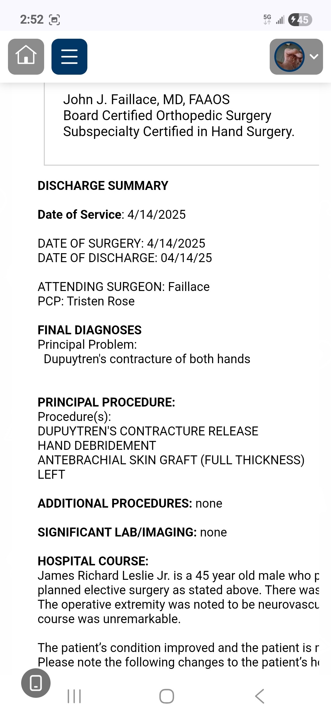 I have Dupuytren's contracture of both hands and I've had 3 surgeries per the pics.