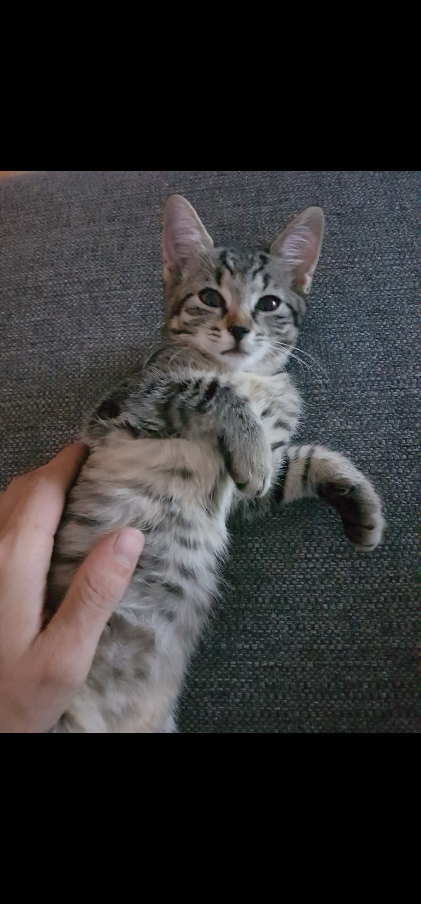 Happy and Gatsby came to us as kittens after their mother passed away, and we raised them by hand with a bottle. Mimi is our newest addition, rescued from a farm, and now she also has a loving home with us.