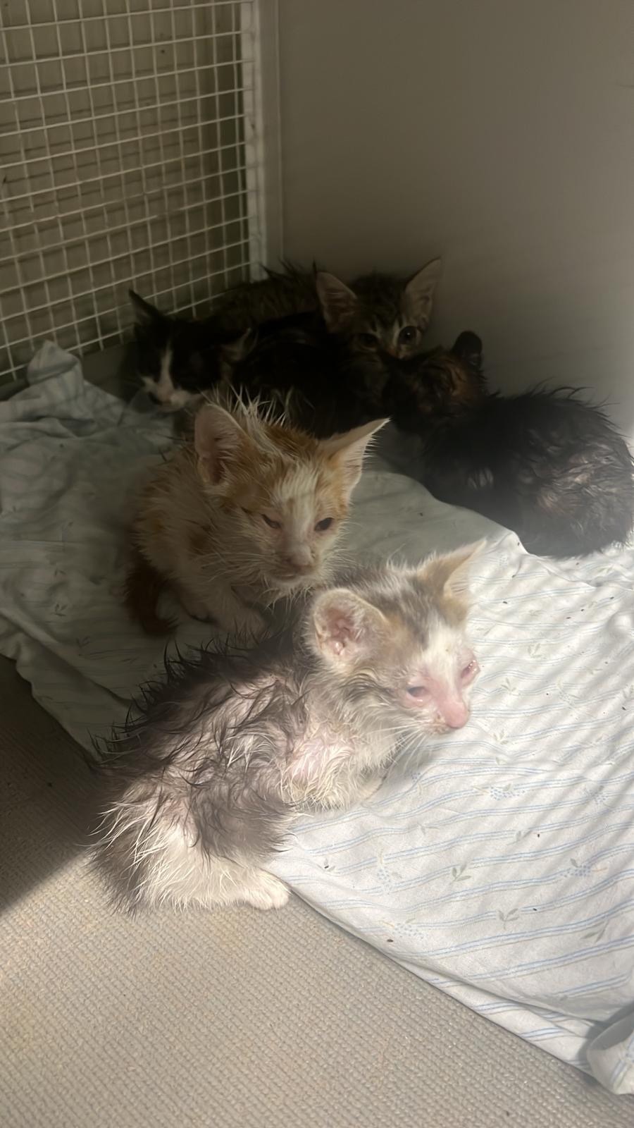 Con l’aiuto di due persone buone, abbiamo catturato 5 cuccioli (quelli messi peggio) da una situazione di maltrattamento già segnalata ad Ottobre ma evidentemente chi vive in quella zona della statale tra Rivalta e Orbassano