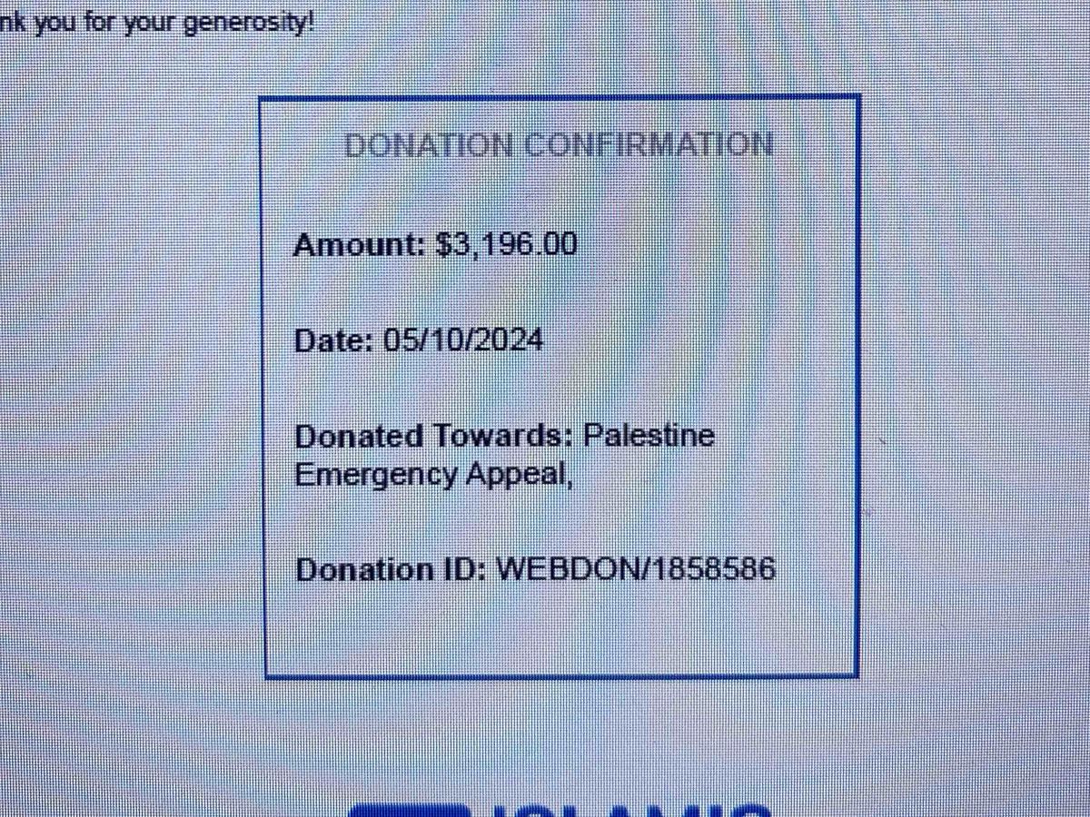 -All donations will be forwarded to Palestine Emergency Appeal of a Canadian registered charity.