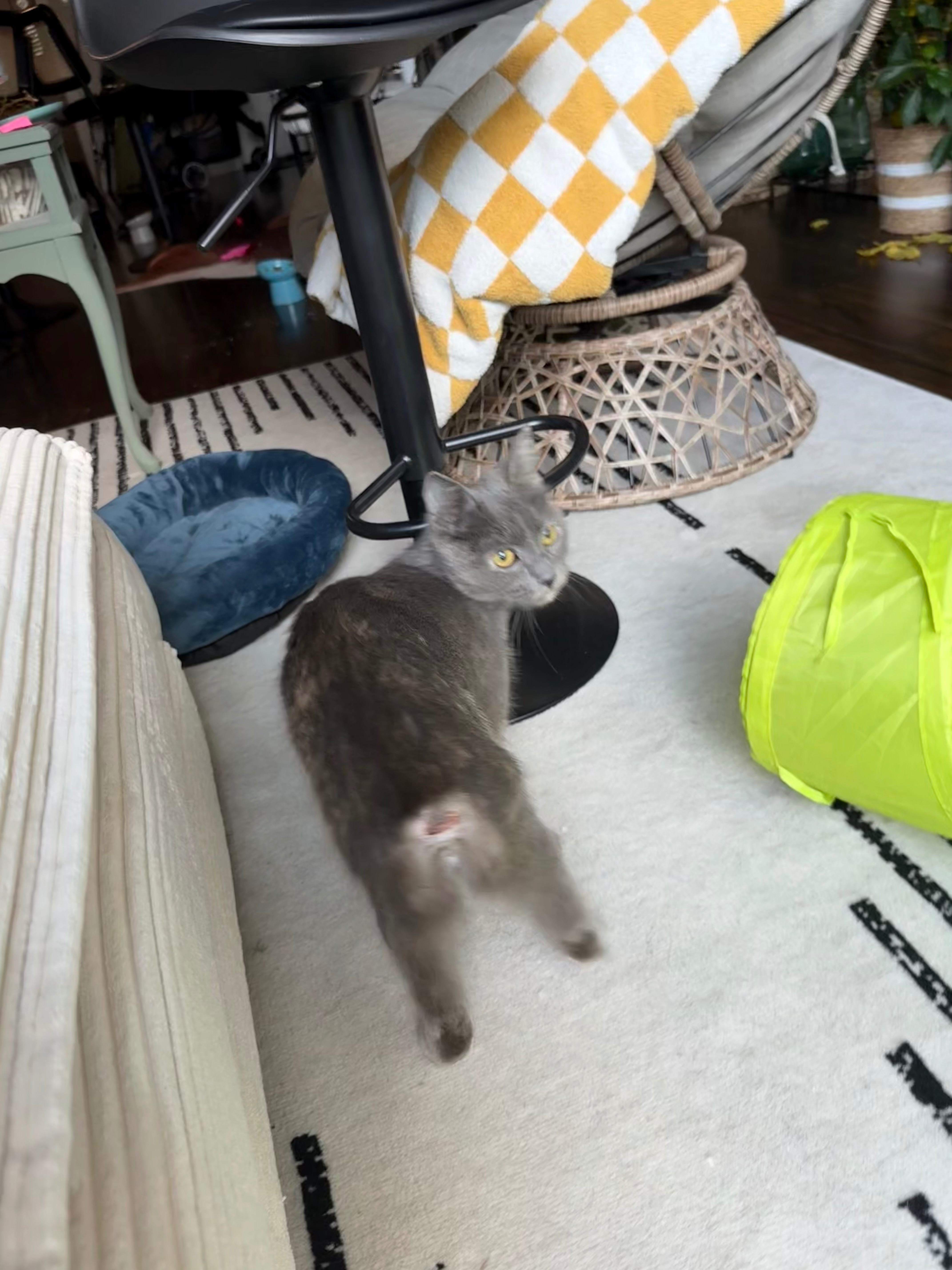 My neighbors found a sweet stray cat who’s missing her tail and might have a broken rib. Her wounds look pretty fresh so I’m trying to get her care ASAP. I took her to get checked for a microchip — she doesn’t have one.