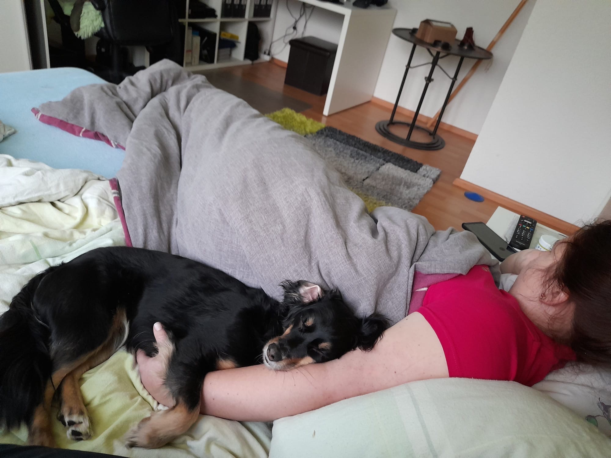 Doch vor einer Woche hat sich unser Leben schlagartig verändert. Wir erhielten die Diagnose, die uns den Boden unter den Füßen wegzog: Buddy hat einen Tumor. Durch den Tumor wird ein Nerv eingeklemmt, sodass er sein rechtes Hinterbein kaum noch nutzen kann. Unser fröhlicher Gefährte, der vorher voller Energie durchs Leben sprang, bewegt sich nun mühsam auf drei Beinen – und trotzdem kämpft er tapfer weiter.