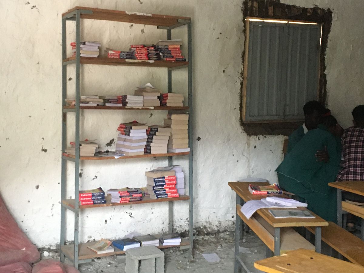 This fundraiser, in collaboration with teachers from Genete Mariam high school, attempts to address at least one of these several concerns. As you can see in the image, the library only has one shelf full of books teachers bought from Bahir Dar for their students. These are self-guide books that are thought to help students pass matric examinations.