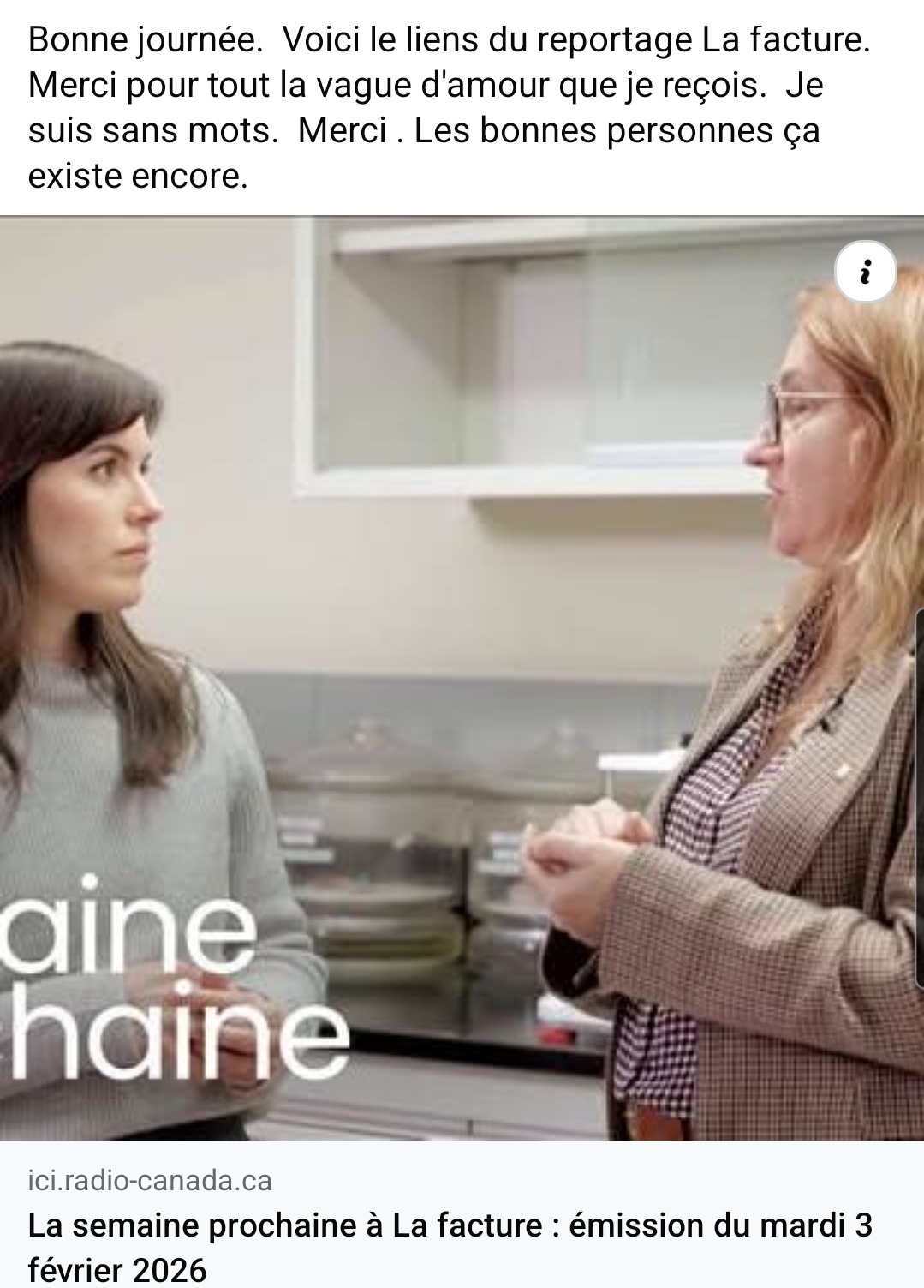 J'ai récemment témoigné de ma situation à l'émission La Facture à Radio-Canada, où j'ai expliqué l'ampleur des conséquences financières et humaines de cette contamination.