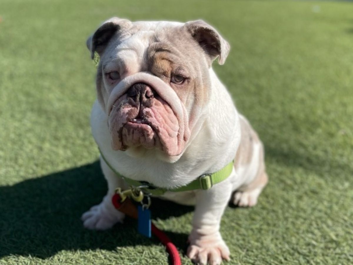 George is everyone's best friend. He helps the foster dogs get comfortable, and greets everyone at bulldog meet-up.
