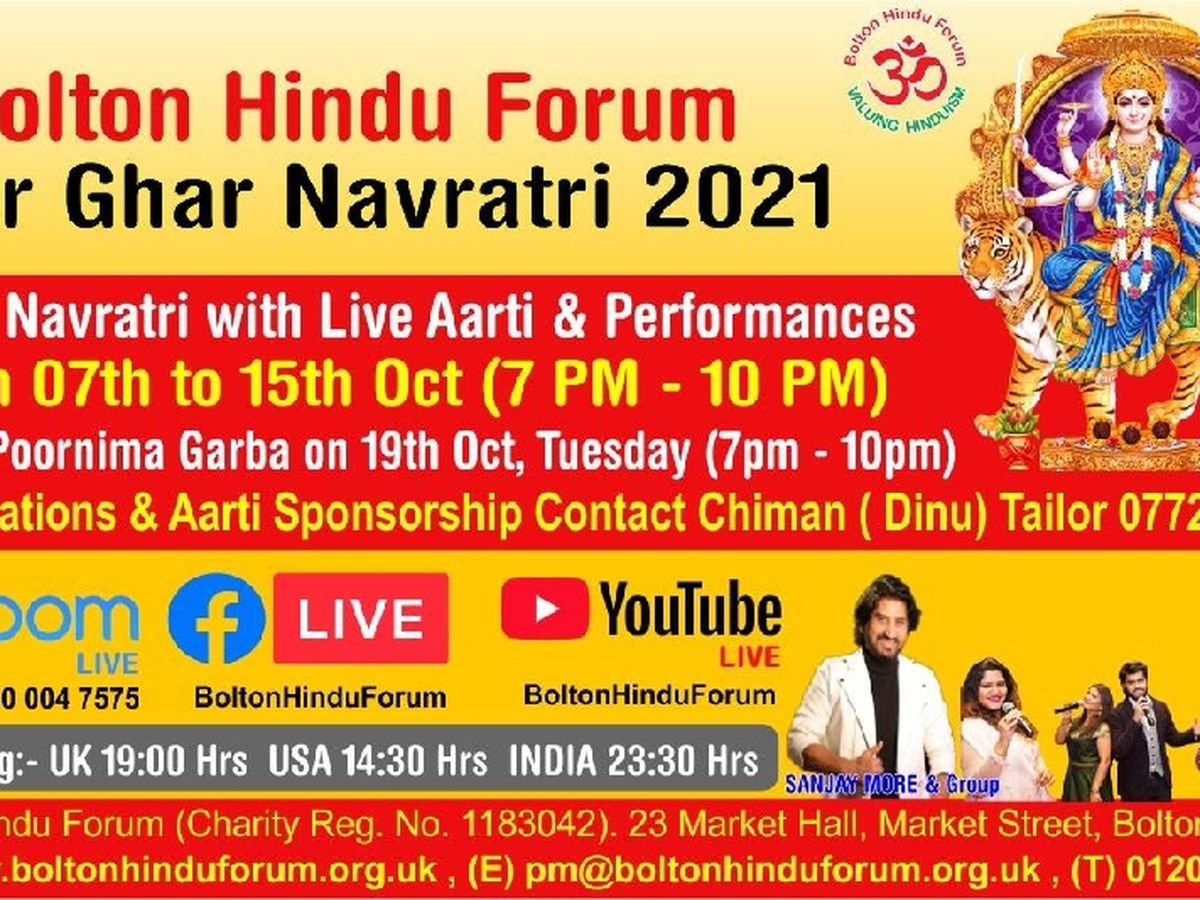 The celebration went viral on social media through the branding of Bolton Hindu Forum’s *“Ghar Ghar Navratri”* celebration, with thousands of viewers tuning from around the world over the nine nights of festivities.