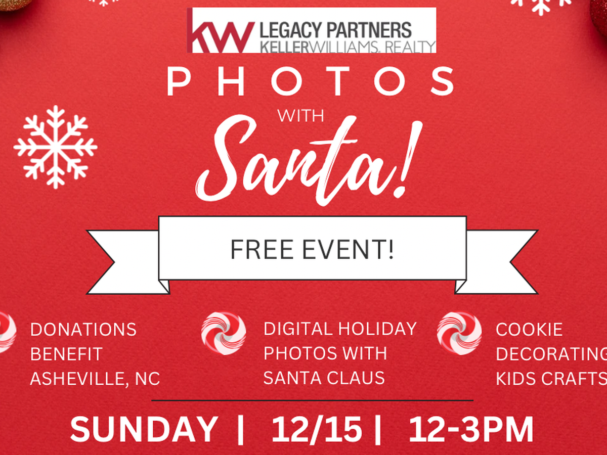 We come together for communities in need at Keller Williams Legacy Partners and this time we’re turning our efforts to help Asheville, NC. Join us for a free Photos with Santa event on 12/15 from 12-3pm at the courtyard of 29 S Main St in West Hartford. We’ll have beautifully-staged, professional, digital photos as well as kids’ crafts and cookie decorating. While the event is completely free and open to the whole community, we are welcoming, and encouraging, donations to support the rebuilding efforts of Asheville, NC.