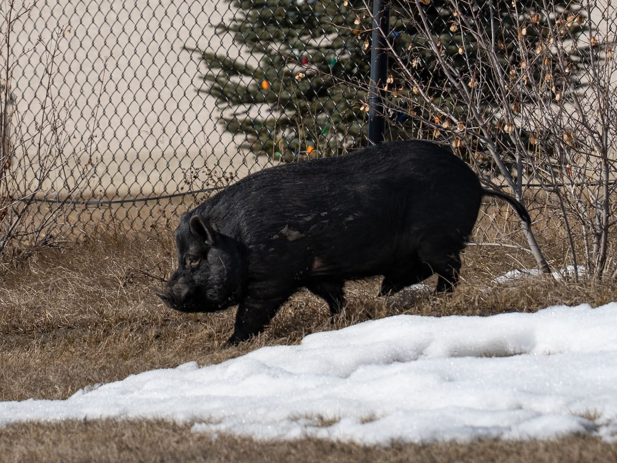 Hello! My name is Jade, I am 21 years old and live in Strathcona County. Late one night I was on Facebook when I had seen a shared post of a feral pig. The more I looked into it the more I knew I wanted to help. I was told that this pig had been loose for a year and was roaming a subdivision. I was out of town at the time but right away I knew what my plan for tomorrow would be. Monday rolled along and me and my 17 year old brother hooked up the trailer to head to Gibbons.