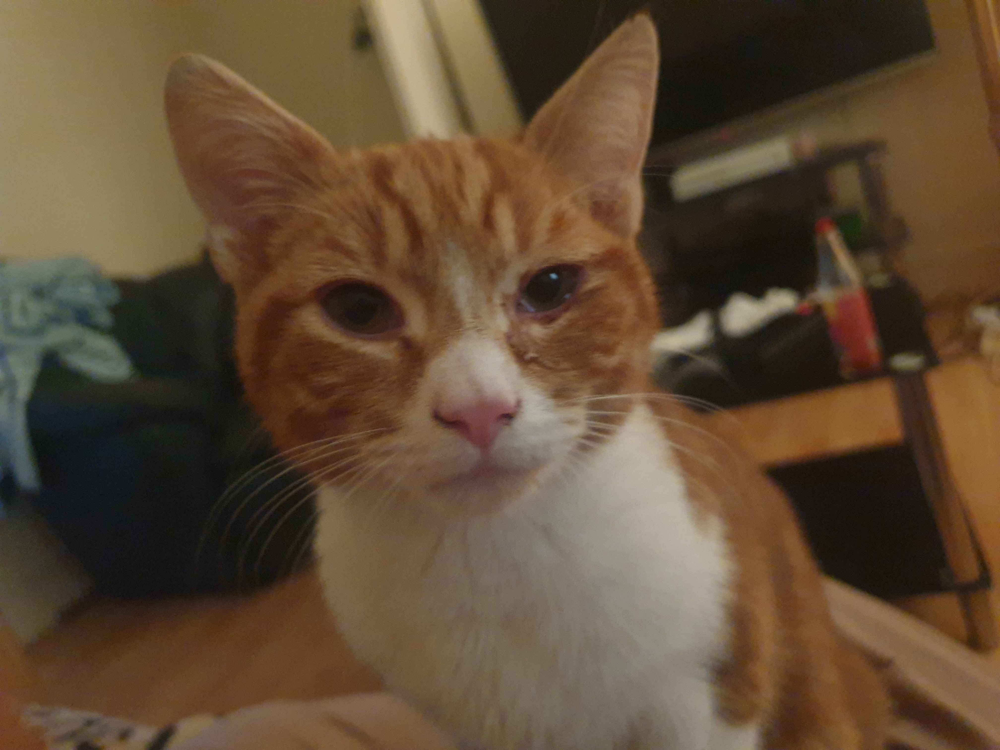 ♡ He is a fighter, despite being too weak to stand sometimes, he loves watching mice and fish on the TV with big beady black eyes