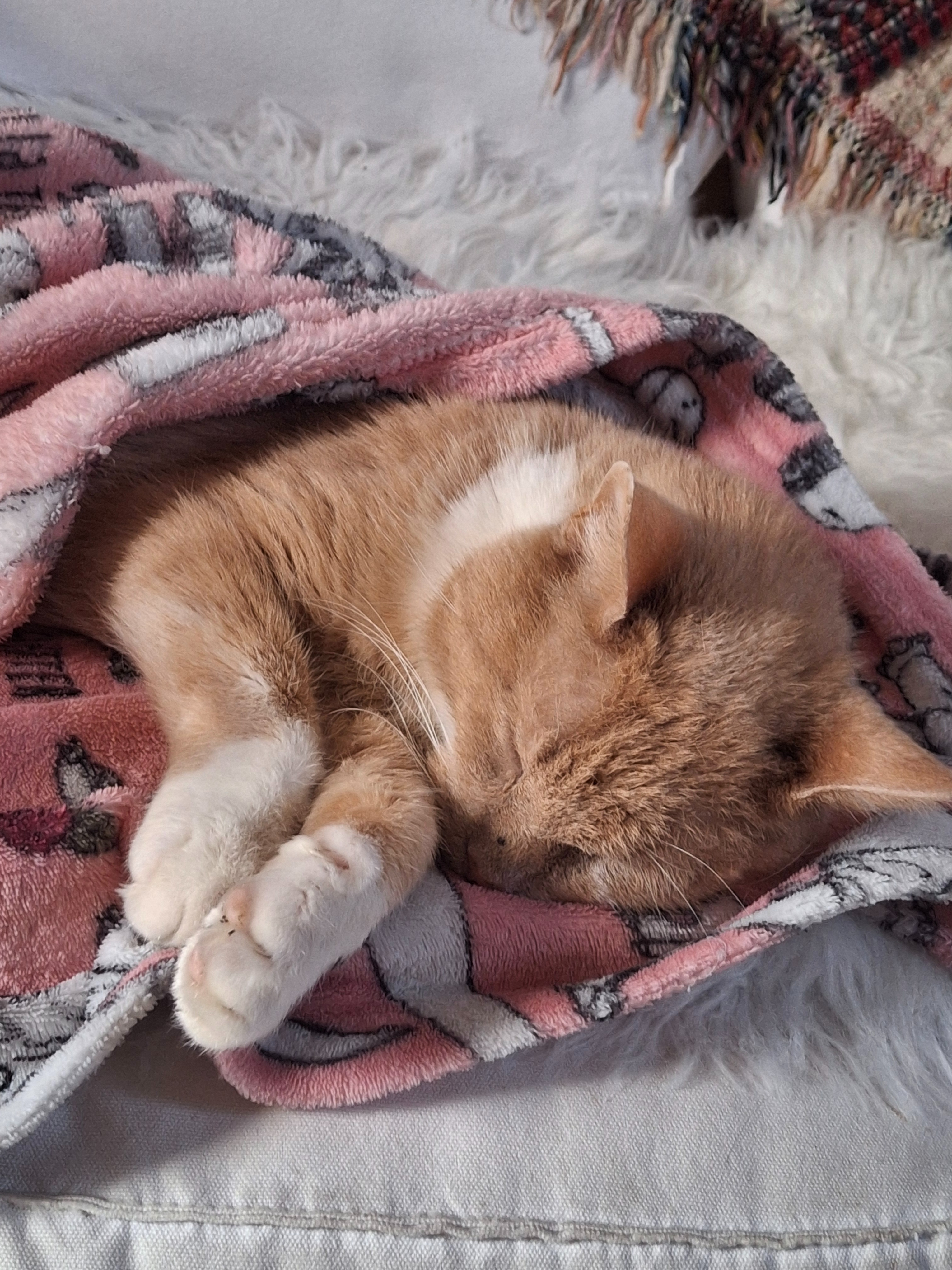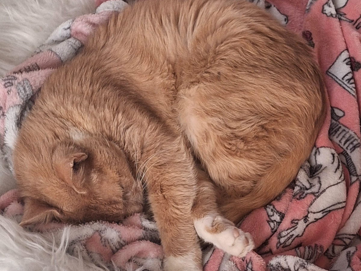 He was always my favourite cat, he loves his blanket and tummy fluffs, he loves spending time with everyone when we were all on the sofa together at Christmas or just on a random Sunday.