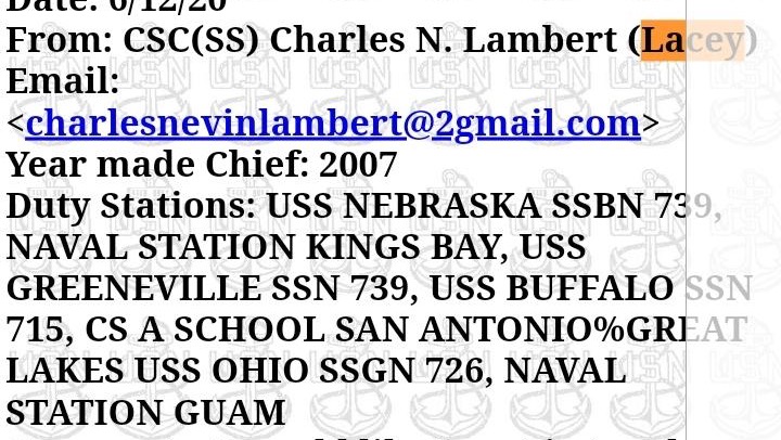 My dad spent 19 years in the Navy, he was a submariner and a chief petty officer. He served on the USS Nebraska, the USS Greeneville and the USS Ohio and was stationed in Georgia, Texas, California, Hawaii, Washington and Guam. He loved the Navy and he was especially proud to be a submariner. He sacrificed a lot for our country but he never complained. He gave his best whether at sea or a shore and he could always be counted on in times of need.