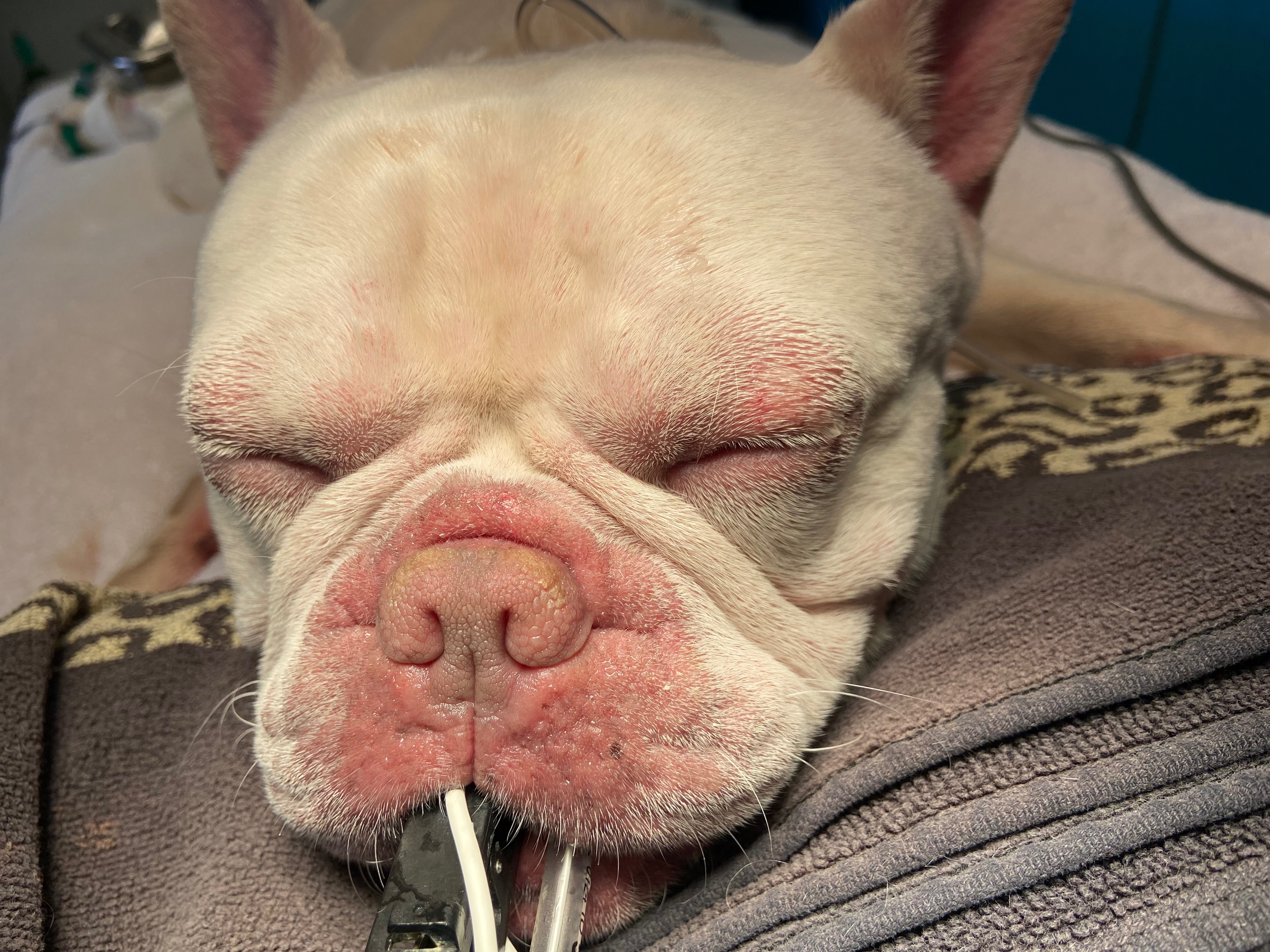 Hello everyone! This is Ace. He is a 4-year-old French bulldog. He loves to nibble, play, and snuggle. Ace recently underwent stenotic nares surgery on Thursday, May 29, 2025.