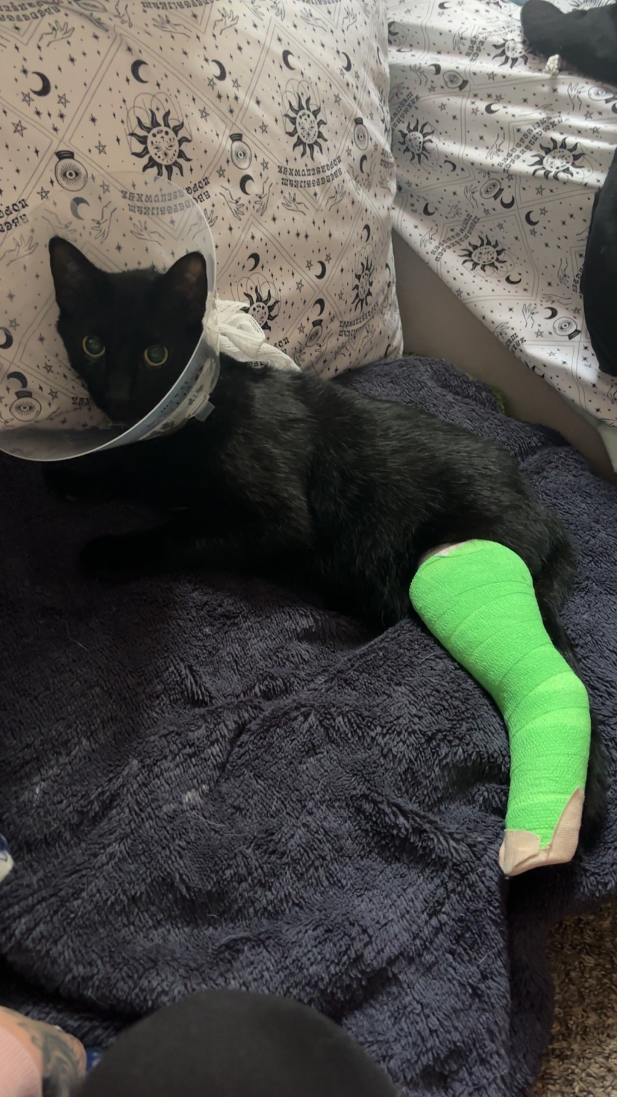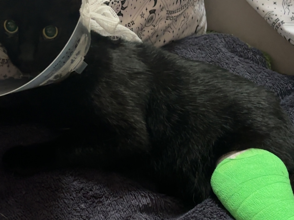 Hello, my name is Casey and here you see my cat Billy. He was hit by a car in April and I have been taking him to the vet every week to get recasted. Unfortunately, his bones are just not healing appropriately and now we are at a point where his leg needs to get amputated. I’ve spent so much money on all of his vet visits and popping his ankle back into place, but it is just not healing. I cannot afford to get his leg amputated and if I don’t get it amputated, then I have to put him to sleep. He is such a young cat full of life and I really do not want to end it here. He has so much of a journey to fulfill and is such a peaceful soul that I want to keep him alive. He is my daughter‘s best friend and helps my daughter through all of her health conditions. She has epilepsy, a heart condition, and problems with her eyes. And moments when we weigh heavily on her health, Billy is here to support her to get through her hard times. Billy means so much to us and we really want to keep him alive! Please do what you can to support this surgery! Thank you so much!