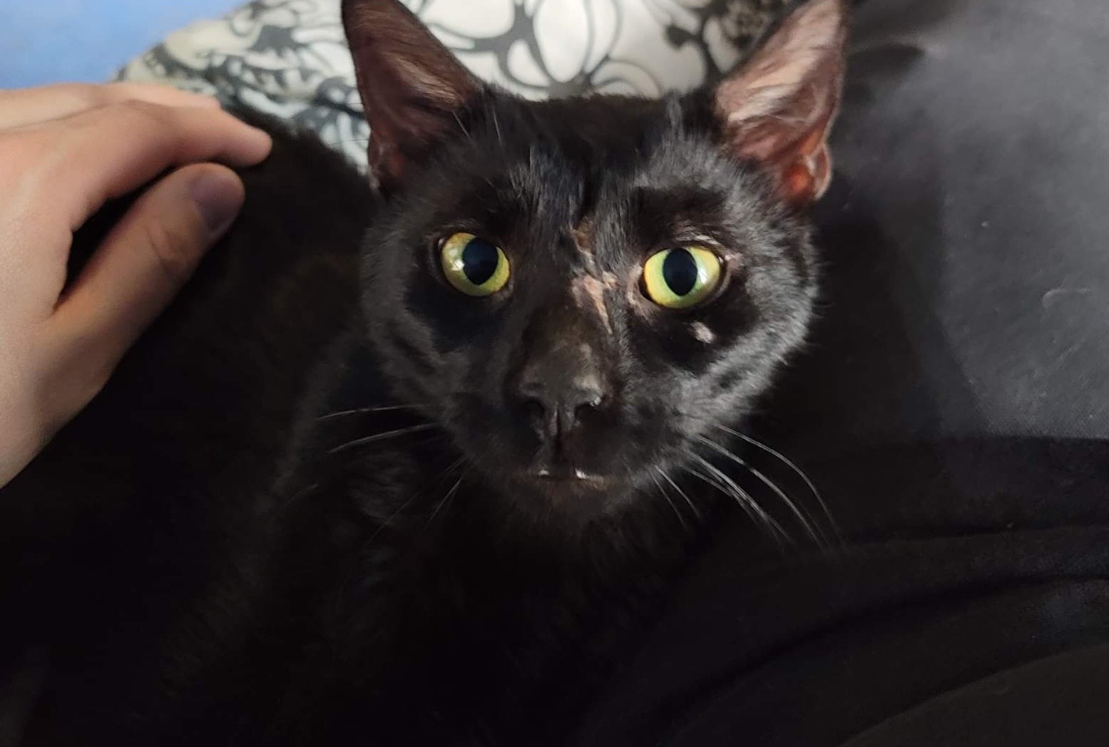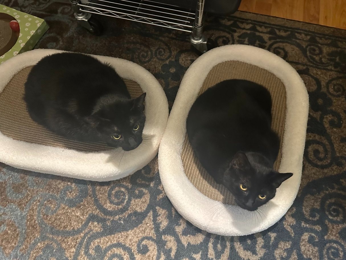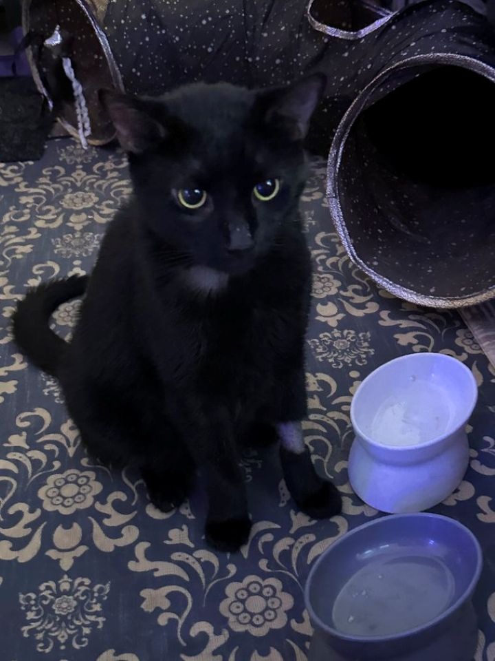 This is my cat Binx. Our story with Binx began on March 17th, 2021. This is the day we rescued Binx, or the way I like to say it, he rescued me. We found him on our Gazebo hurt and starving. We had wet cat food in the house so we fed him, and I asked Charlie, "Can we keep her?" (At the time he was so malnourished we couldn't tell he was a boy until a few days later once he had some nutrients in him.) It was a long road getting him healthy, but we finally did over the years we were blessed with two more cats who rescued us, Baby and Benny. When Binx and Baby met, they were instantly best friends. They became a bonded pair. One does not do well without the other.