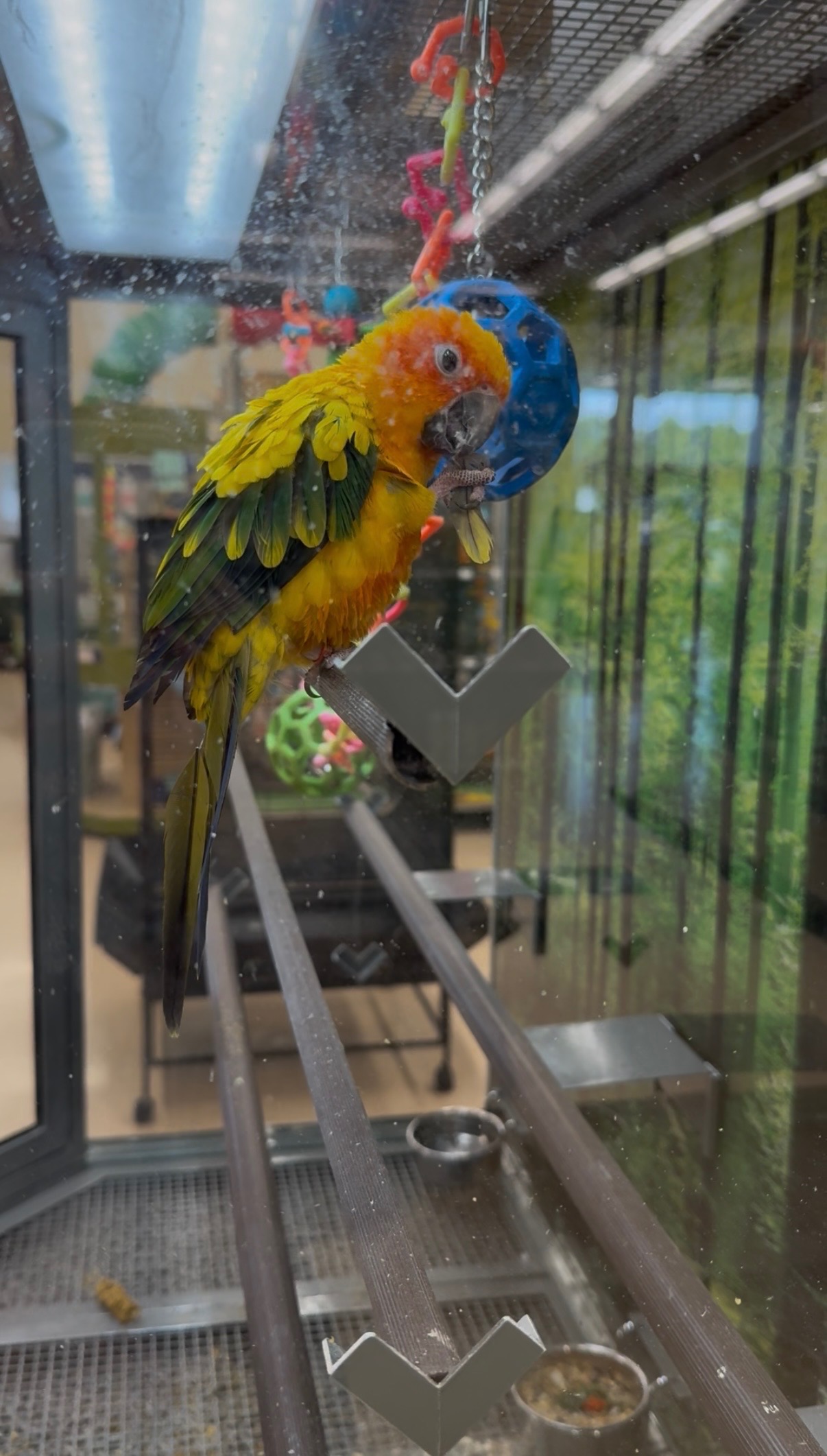 He’s been in the store for months, alone in a small enclosure, without natural sunlight or meaningful interaction. Over time, I’ve watched his condition decline, and he’s now showing signs of severe stress—specifically feather plucking, where he’s pulling out and even ingesting his own feathers. It’s heartbreaking to see. Parrots will often do this when they are severely depressed and can start experiencing seizures as well and pass away