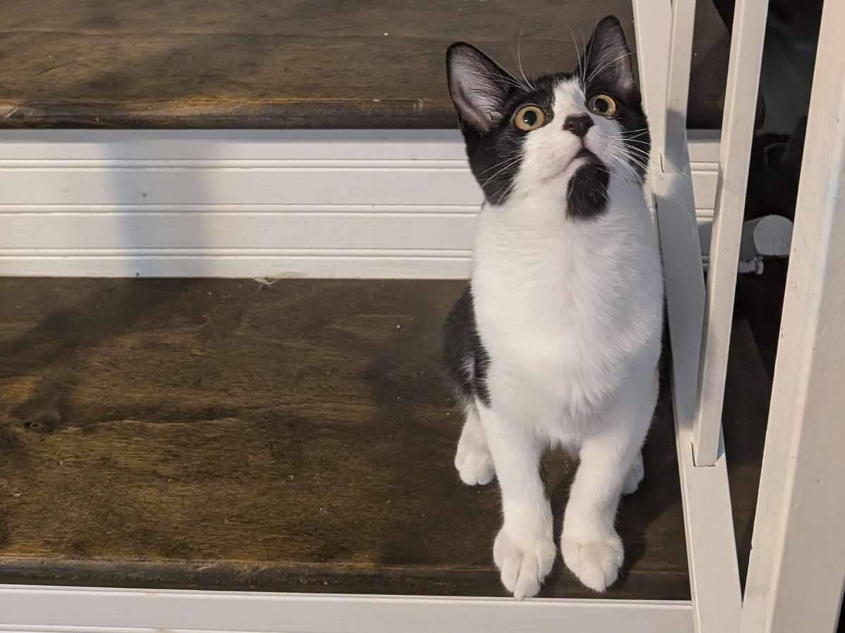 Over the weekend Eugene suffered a 7ft+ fall from the top level of our apartment to the bottom stairs, landing on his hip. The veterinarian said because of the location of Eugene's injury, he will likely need amputation of his back left leg. But because of his age he has a great chance of making a full recovery and learn to live life on 3 legs much easier than an older cat!