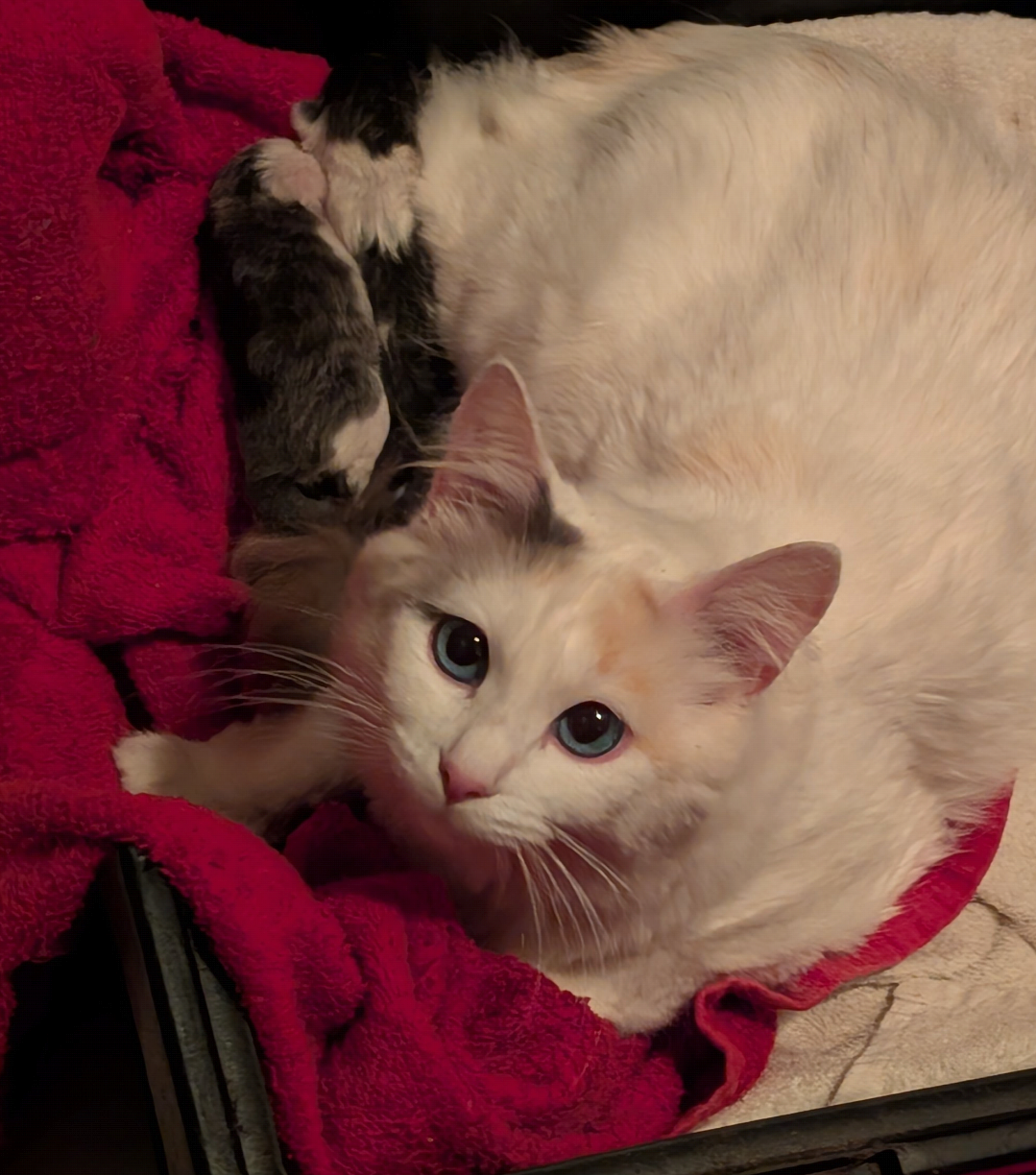 Once the kittens are old enough, all four cats will be spayed/neutered before adoption. Nadiya deserves a home where she'll be loved and cared for, and her kittens deserve a strong, healthy start. Your support will help this little family get the care they need while they're with me, and give them the best chance at safe, loving homes. Every contribution makes a real difference. Thank you for giving them hope!