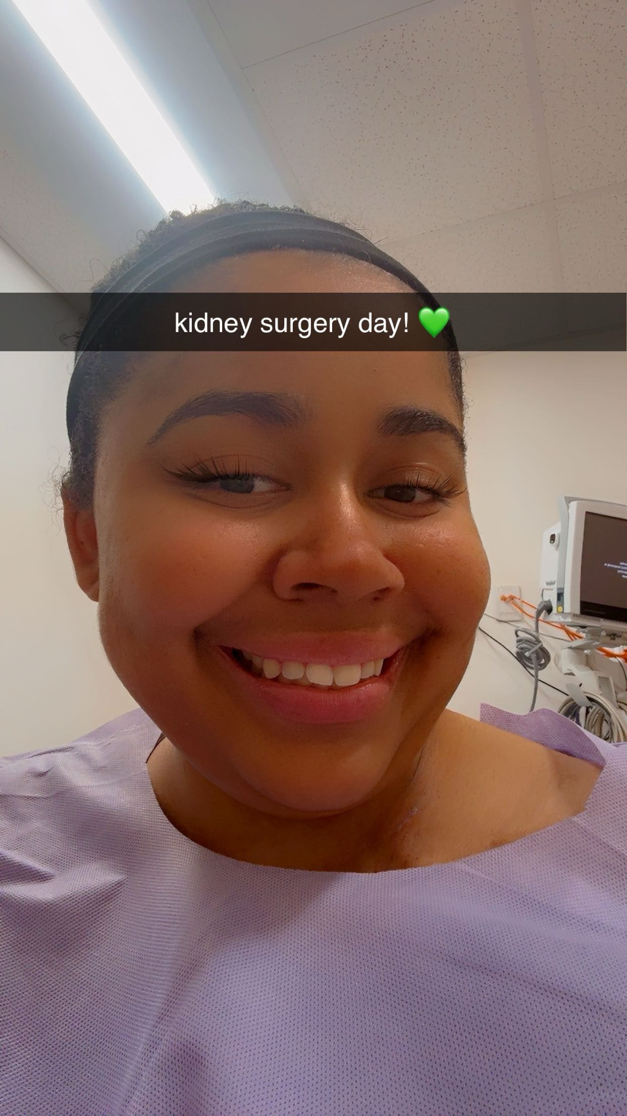My mom posted information on Facebook stating that I need a living kidney donor. After a miraculous series of events, I met my donor, Kristie. She was a B+ like me and turned out to be a match.