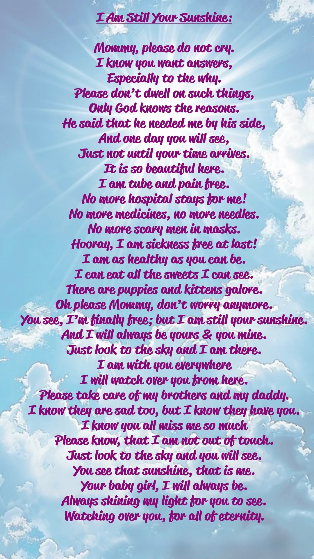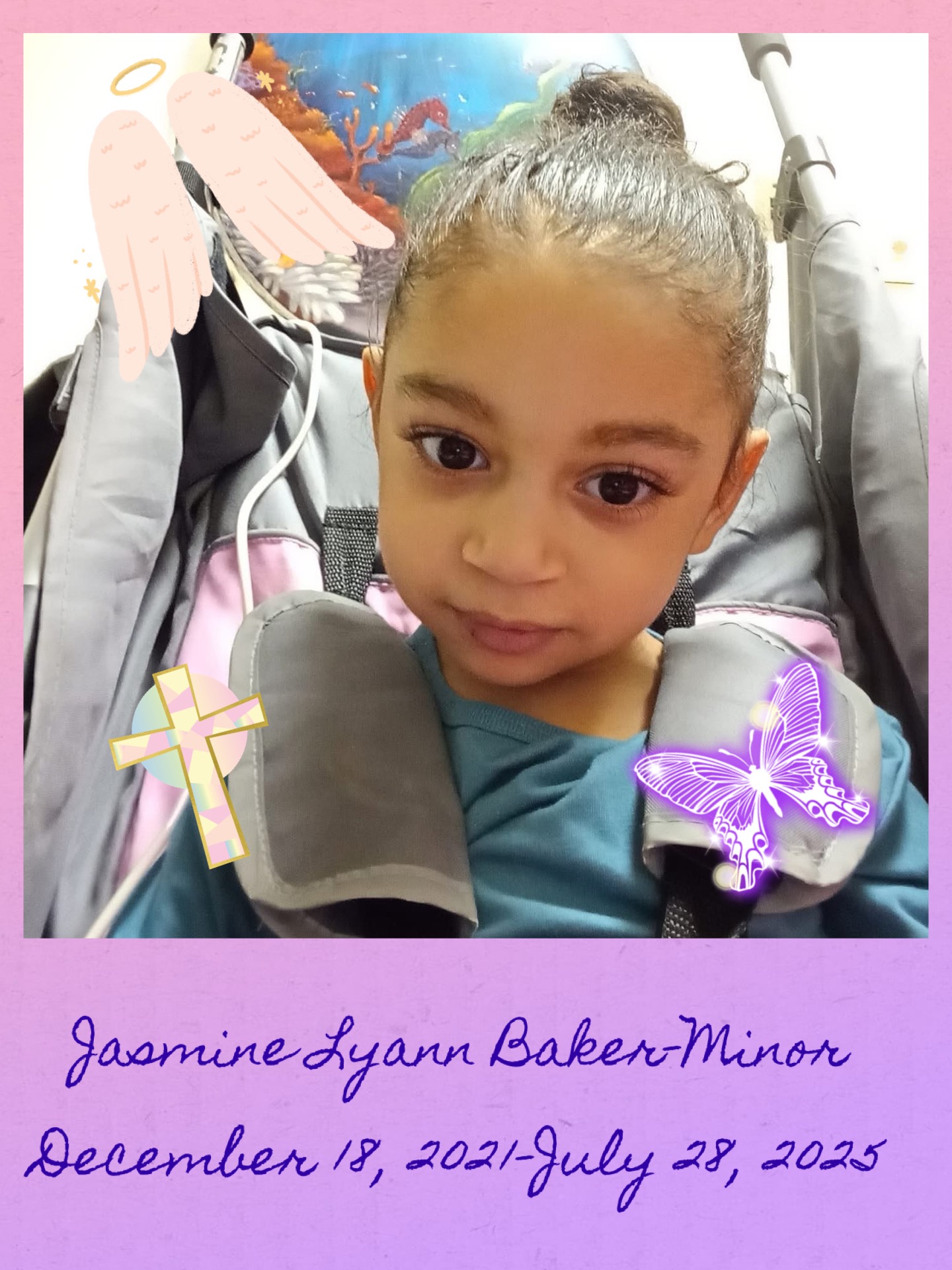 it is with heavy hearts that we announce the passing of our dear friends’ Christopher Minor & Crystal Baker’s daughter Jasmine Lyann Baker-Minor. Jasmine passed away unexpectedly at home on Monday July 28, 2025. She was born on December 18, 2021. She was born with congenital heart defects. She also developed epilepsy and was diagnosed with Tuberous Sclerosis as well. She also had many tests, procedures, surgeries and hospital visits in her short life. She fought bravely for over 3 and a half years. She unfortunately, unexpectedly succumbed to her heart defects this morning. We are heartbroken & devastated. Jasmine was a bright light to all who met her. She had the biggest & most beautiful brown eyes. She was a true princess as her name suggests. She will be greatly missed. No parent should ever have to lose their child. She leaves behind her loving parents and her two brothers Jacob, 4, and Brandon, 1; as well as grandparents and numerous aunts, uncles, family and friends who loved her dearly. We are asking for prayers at this time and if you are so compelled to do so, we have set this Go Fund Me up to provide them with assistance in giving their beautiful daughter a proper burial. Any amount will help.