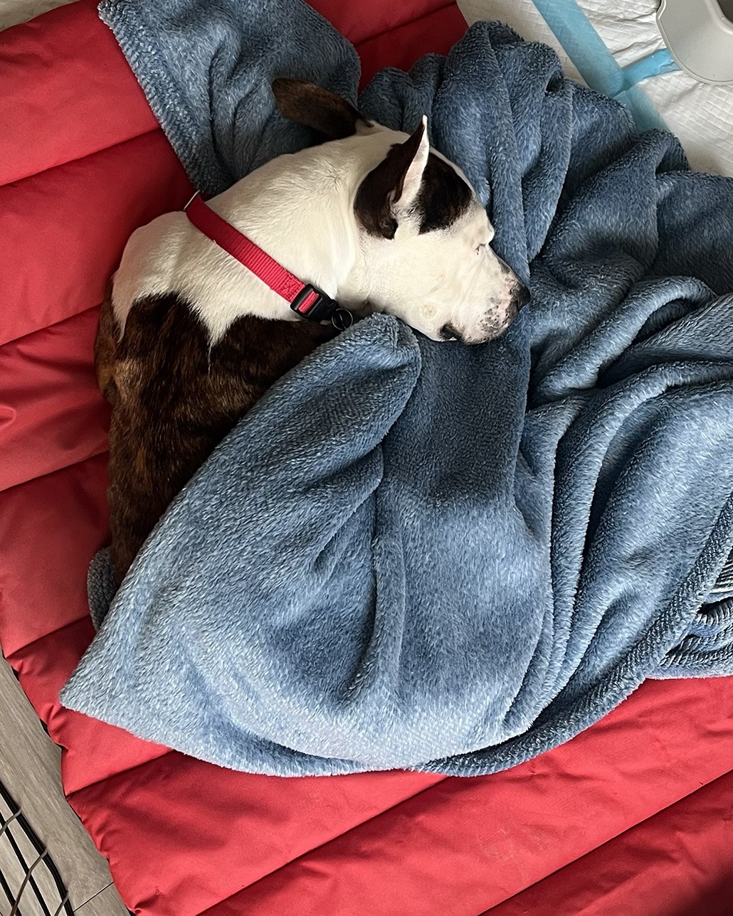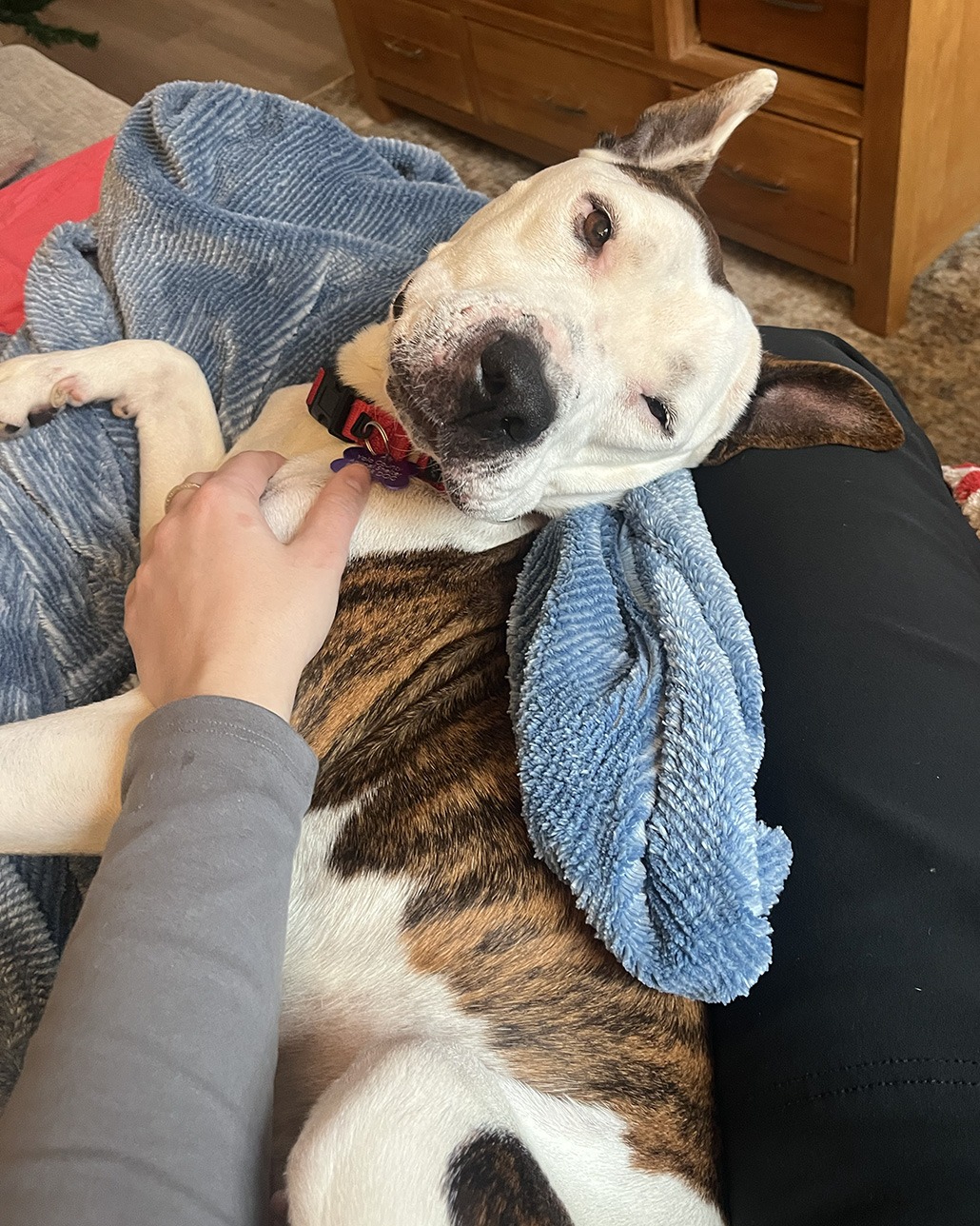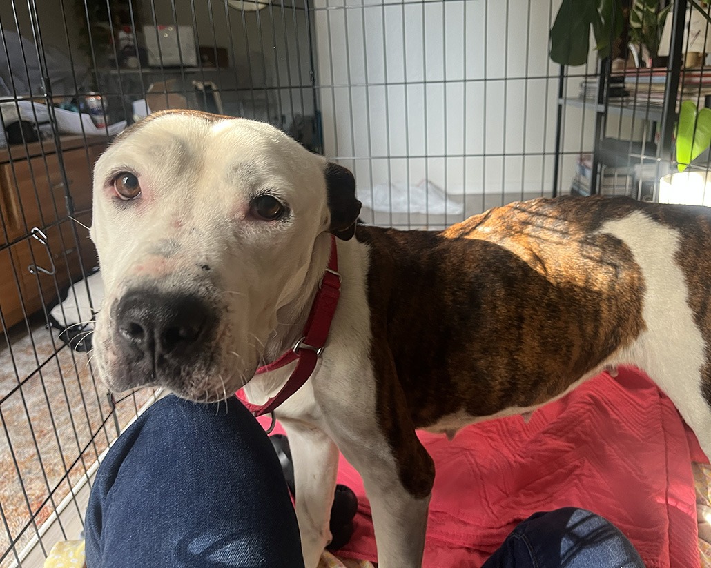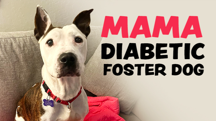 Mama is a 6-year-old shelter dog now safe in a loving foster home after surviving years of undiagnosed diabetes that left her severely underweight but never dimmed her sweet, silly, affectionate spirit. She is finally receiving insulin every 12 hours and the care she needs.