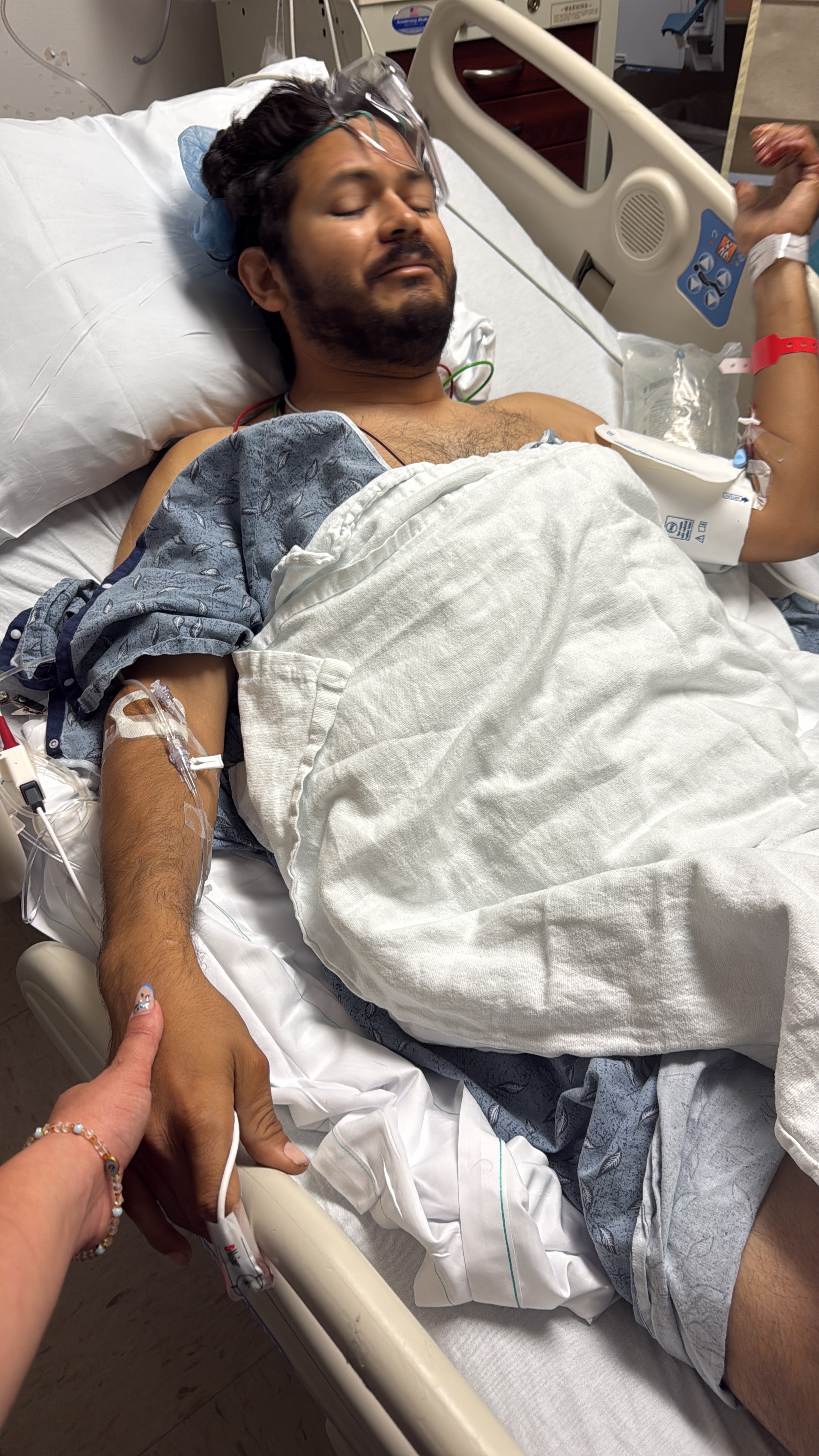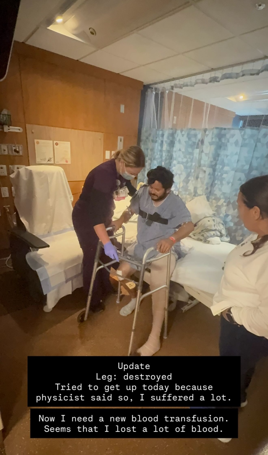His left leg took the worst of it. His femur snapped and broke through the skin in an open fracture. His knee was shattered into multiple small fragments, and doctors found additional fractures in the upper part of his femur. He was rushed to the hospital and within a few hours underwent emergency surgery to reconstruct his leg with plates, screws, and metal implants. The next day, he needed a blood transfusion due to how much blood he had lost.